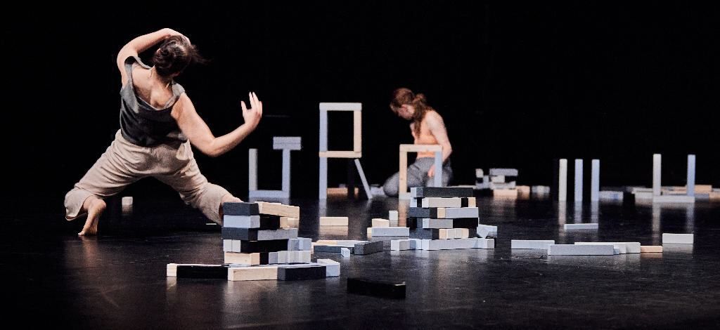 Vor einer Bühne mit Hunderten von Holzziegeln bewegen sie sich in einer Endlosschleife aus Zerstörung und Aufbau. In der sich verändernden Landschaft tauchen Bilder auf - Fragmente, die Ruinen, Kämpfe und Nachwirkungen widerspiegeln - und Szenen heraufbeschwören, die unweigerlich an Kriege und Konflikte erinnern, was das Werk mit den Spannungen unserer Gegenwart in Einklang bringt.