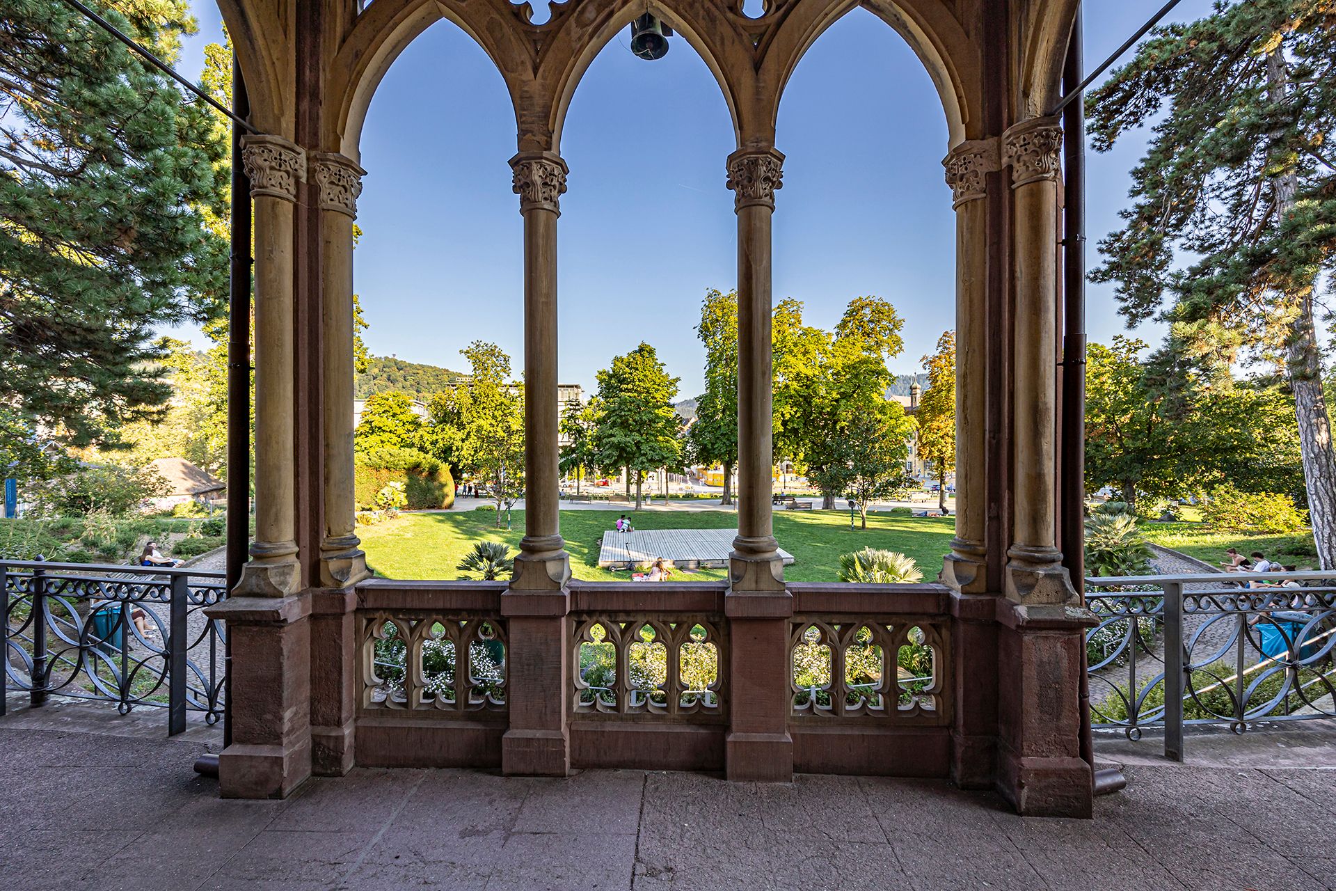 Aber auch beim Anblick des prachtvollen, romantisch anmutenden Colombischlössle und der weitläufigen Parkanlage werden vergangene Tage lebendig. Hier, auf der ehemaligen französischen Bastion Saint Luis, ließ sich die Gräfin Maria Antonia Gertrudis von Zea Bermudez y Colombi ihren Witwensitz bauen. Der Freiburger Architekt Georg Jakob Schneider errichtete zwischen 1859 und 1861 das ehemalige Herrenhaus im verspielten gotischen Tudorstil des englischen Mittelalters. Inmitten des üppigen Gartens, umgeben von Blumenbeeten, Springbrunnen und Skulpturen, erscheint das Colombischlössle wie eine Fata Morgana des 19. Jahrhundert. Lassen Sie sich verzaubern!