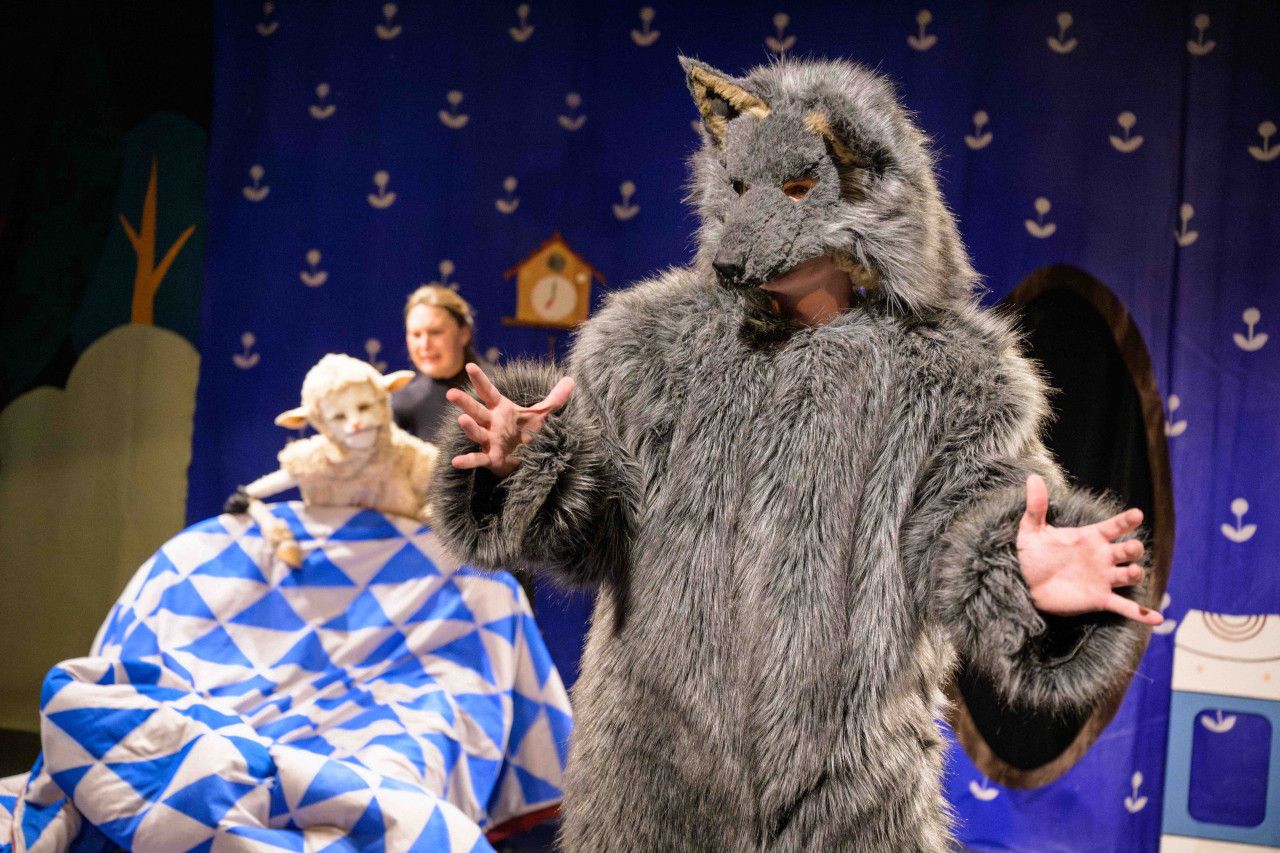 Das Schaf Bellwidder Rückwelzer liebt sanfte Dinge: Blumen, Vogelgesang und Brombeeren. Doch im Wald, wo es all das gibt, lauern hungrige Wölfe. Nur die Bösen sind stark, denkt Bellwidder und näht sich einen Wolfspelz. Jetzt sieht er so gefährlich aus, dass sogar sein Spiegelbild Angst hat. Bellwidder, das Schaf im Wolfspelz, kann keine Blumen mehr riechen und keine Vögel mehr hören. Dafür fallen die Wölfe Lamona und Philip auf seine Verkleidung herein und nehmen ihn in ihr Rudel auf. Doch sein neuer Pelz geht immer mehr kaputt. Bellwidder hat Angst – bestimmt werden die Wölfe ihn fressen, wenn sie bemerken, dass er in Wirklichkeit ein Schaf ist! Als er nur noch im Schafsfell vor den Wölfen steht, erlebt Bellwidder jedoch eine große Überraschung … Das Team von Frida und das Wut und Die Nacht, als Lu vom Himmel fiel bringt das preisgekrönte Kinderbuch von Sid Sharp, das u. a. für den Deutschen Jugendliteraturpreis in der Kategorie Kinderbuch nominiert war, als Figurentheater auf die Bühne. In dieser Geschichte sind nicht die Bösen stark. Sie verpassen das Beste. Echte Freundschaften entstehen erst, wenn wir mutig zeigen, wer wir sind und unsere Verletzlichkeit nicht verstecken. Oder: „Eine wunderbar schaurige Geschichte mit einem tollen Ende, das uns lehrt zu uns selbst zu stehen!“, wie es die Stiftung Lesen in ihrer Empfehlung treffend auf den Punkt bringt.