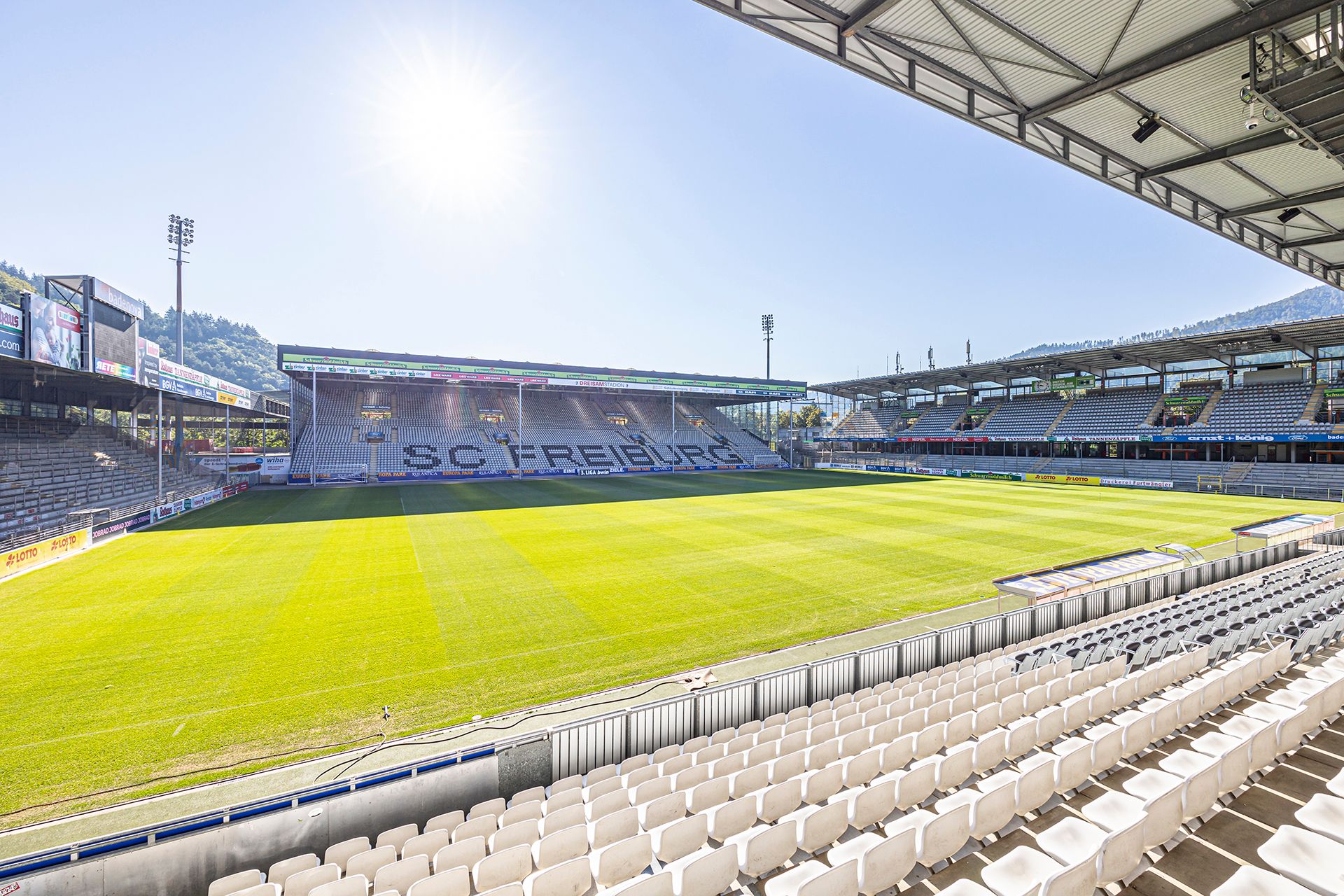 Das Stadion des SC Freiburg war das erste komplette Solarstadion in Deutschland. Auf 2.200m² Solarfläche werden in der Arena 275.000 Kilowattstunden Strom per anno produziert und damit der Ausstoß von ca. 136 Tonnen CO2 pro Jahr vermieden. Im Rahmen der badenova-Kampagne "Energiewende für alle" soll langfristig die CO2-Neutralstellung des Stadions erreicht werden.
