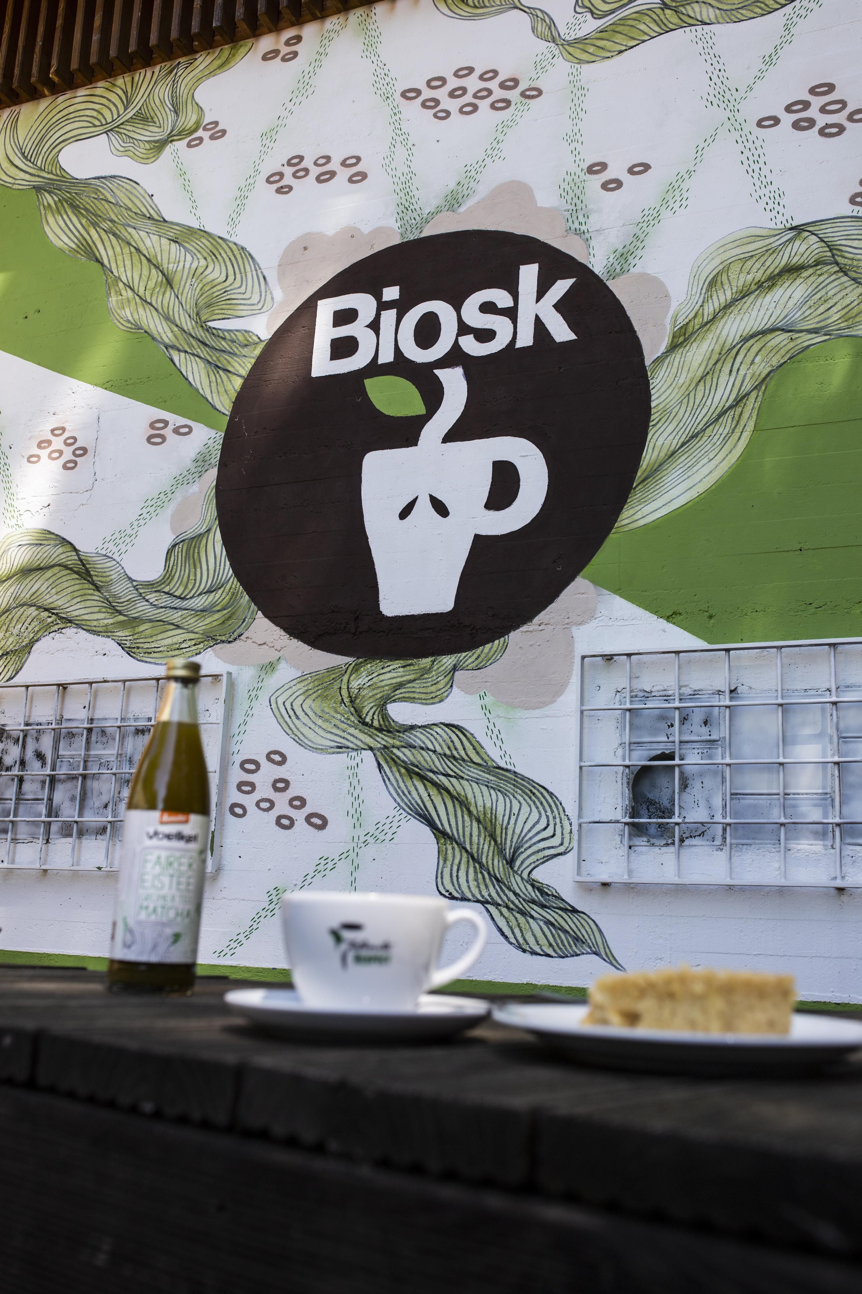 BIOSK is a charming organic café in Freiburg with outdoor seating under large trees. The menu includes mainly regionally produced, certified organic cakes, soups, quiches and drinks. The coffee is certified organic and fair trade, although the espresso is not grown locally. The café combines sustainable, high-quality products with a natural, relaxed atmosphere that invites you to consciously enjoy your time here.