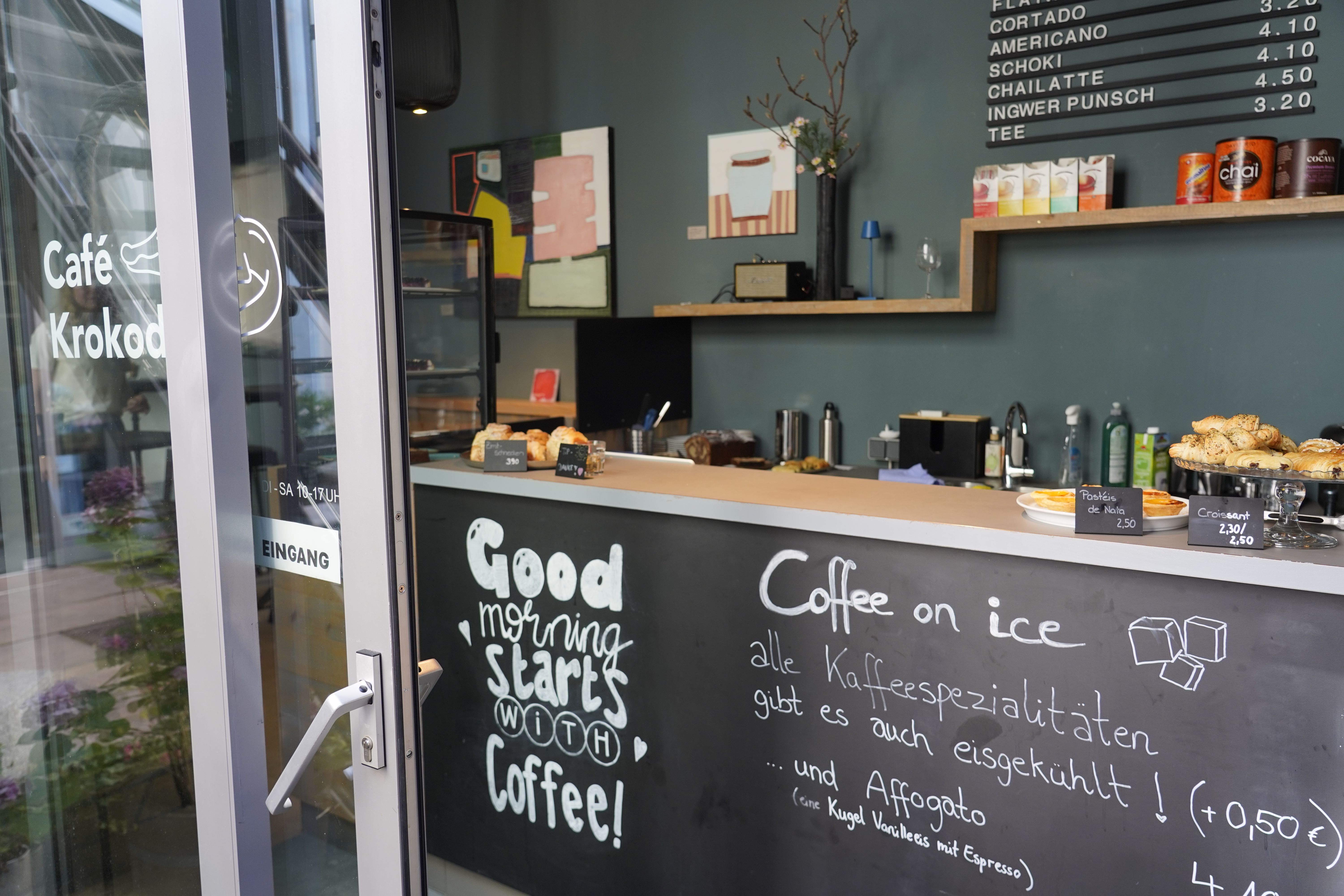 The café is idyllically situated on the Gewerbekanal near the Krokodil.