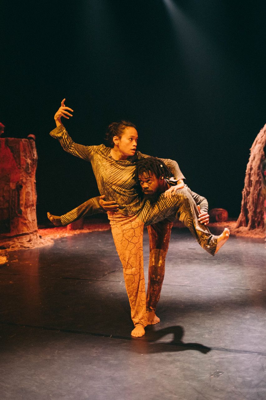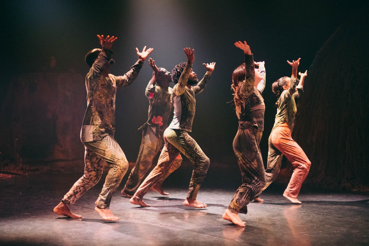 Combat des lianes means "battle of the lianas". Lianas are plants that climb up trees and hunt for light. They snake their way through the rainforest. Nothing can stop them. For his choreography, Zora Snake was inspired by the mighty lianas of the forests of Cameroon. Like the lianas in the forest, this dance piece grows and winds its way across the stage. It fights against the injustices of our modern capitalist world, against the exploitation of nature and the eradication of living environments. Music and movement merge into a powerful expression against oppression and destruction - loud and unstoppable. The dancers' bodies become a mouthpiece for solidarity and renewal. Movements from hip-hop, contemporary dance and traditional Cameroonian dances combine to create a collective ritual. An evening full of power and poetry that transforms the stage into a place of encounter.
