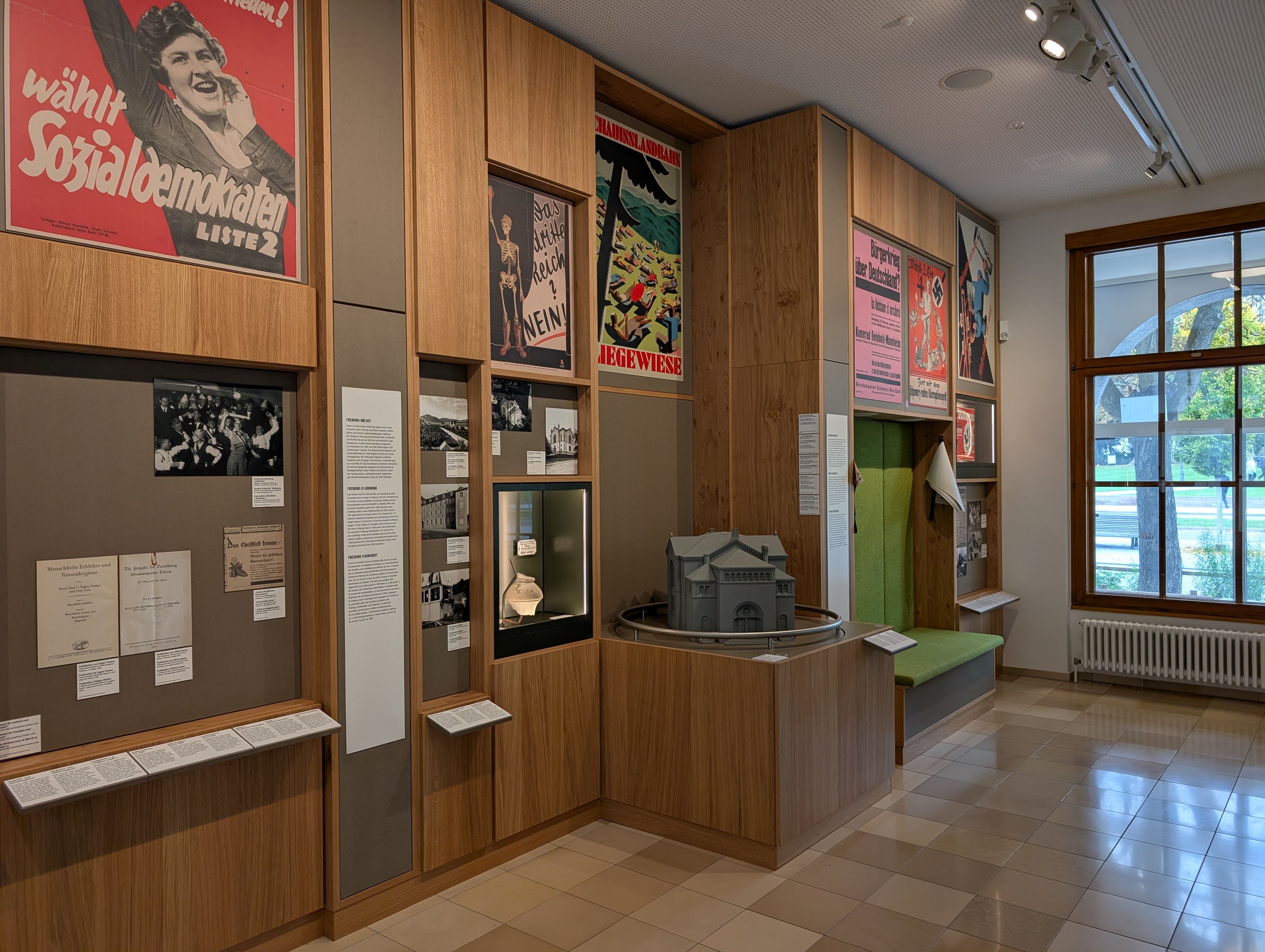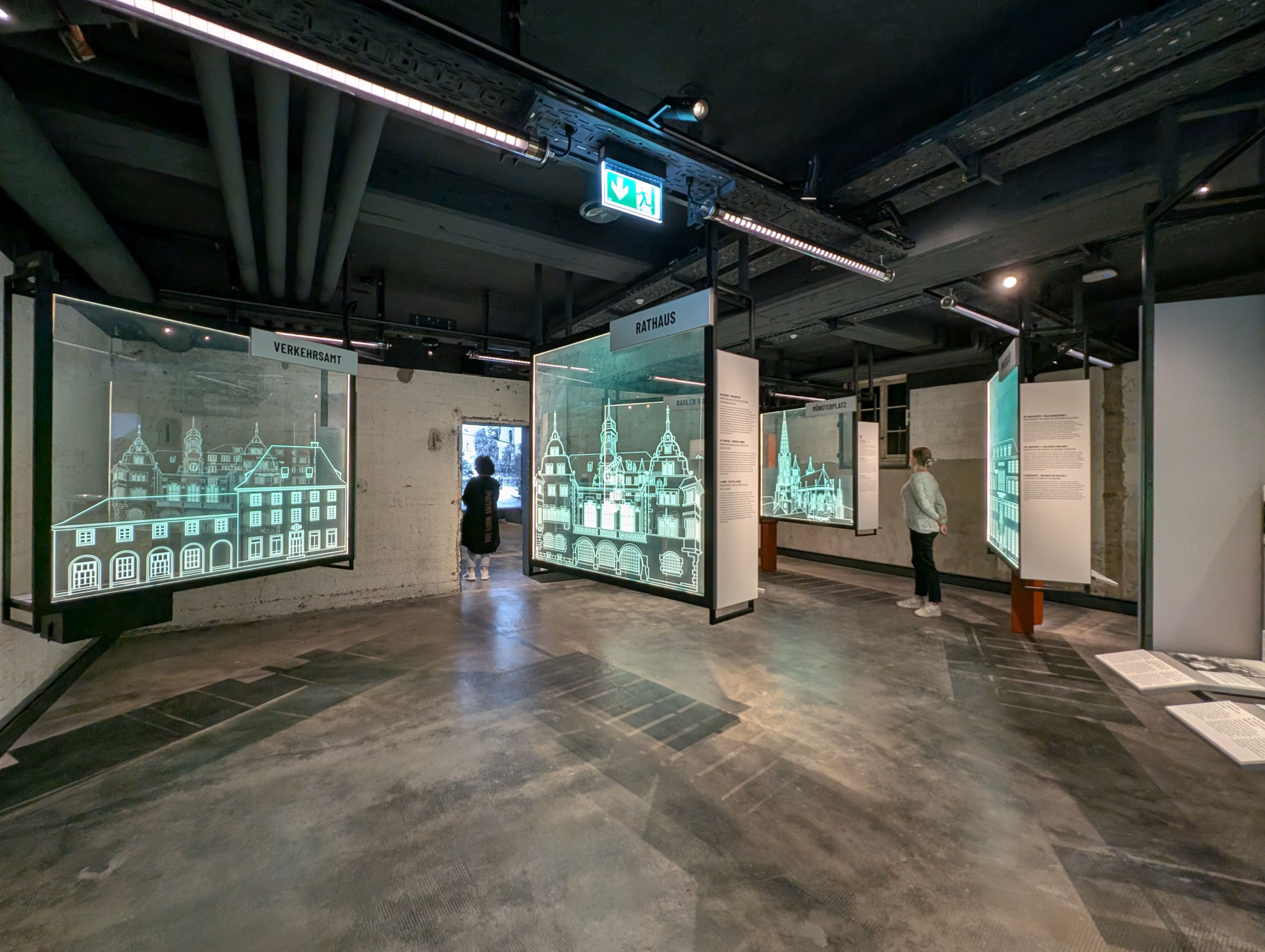 The Documentation Center for National Socialism Freiburg illuminates the history of the city between 1918 and today on three levels. The focus is on the period of National Socialism and its effects up to the present day. Four chronologically designed "time rooms" show events, biographies and developments with the help of historical objects, digital media, interactive stations and a former air raid shelter. Colored steles highlight the scope for action of individuals and groups. A memorial room commemorates those persecuted and victims of the regime. The exhibition invites visitors to ask questions, think ahead and reflect on how we deal with history. Digital offerings and audio tours complement the educational concept.