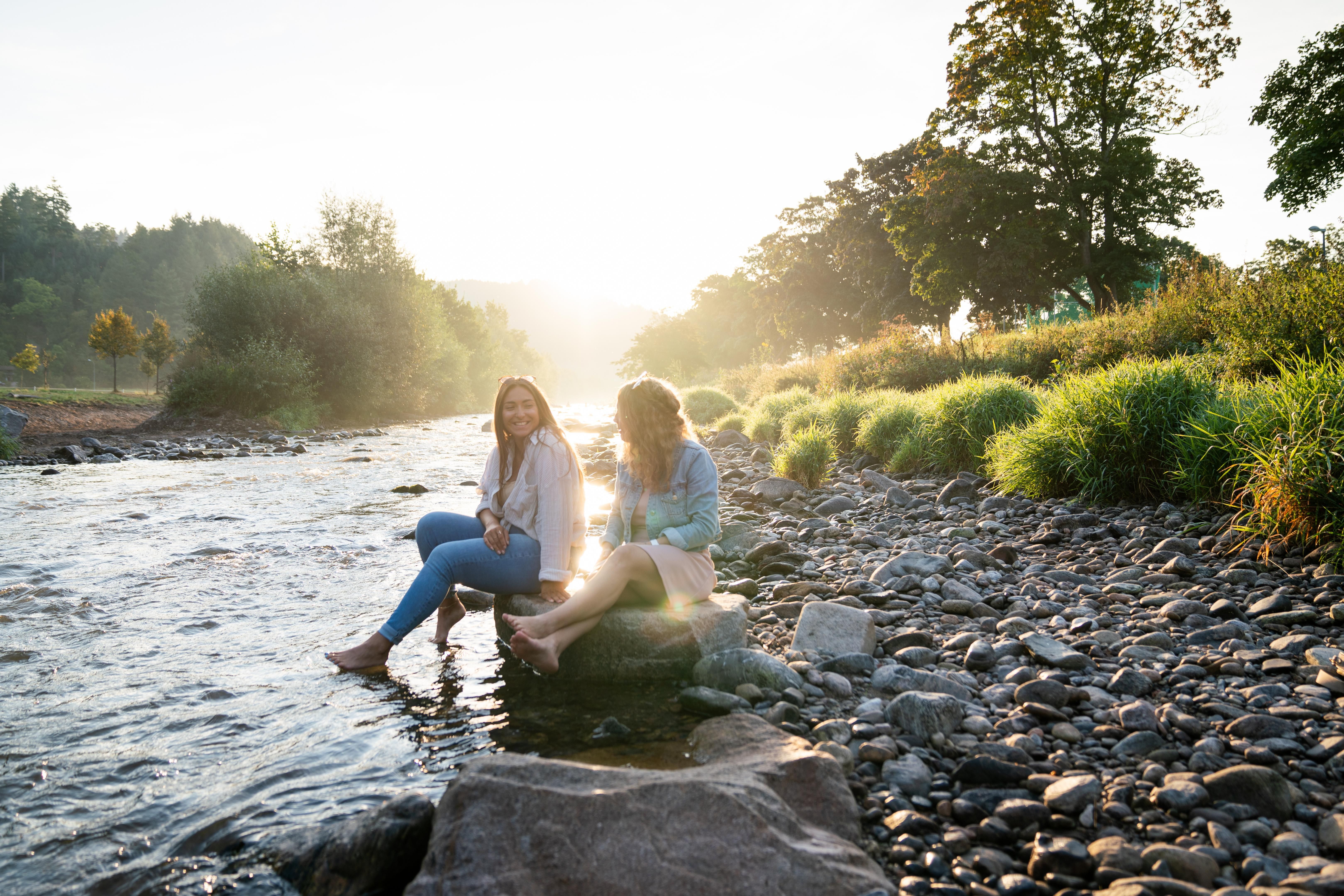 With the Karl-Hausch-Weg, the path becomes a little wider and continues straight ahead. This allows you to stroll at your own pace without thinking too much, or to sit down on one of the benches, in the grass or on the stones in the water. Just listen to the silence. Watch the river flow. Forget time. If you want to take a longer walk, take the shortcut via the Max Müller footbridge.