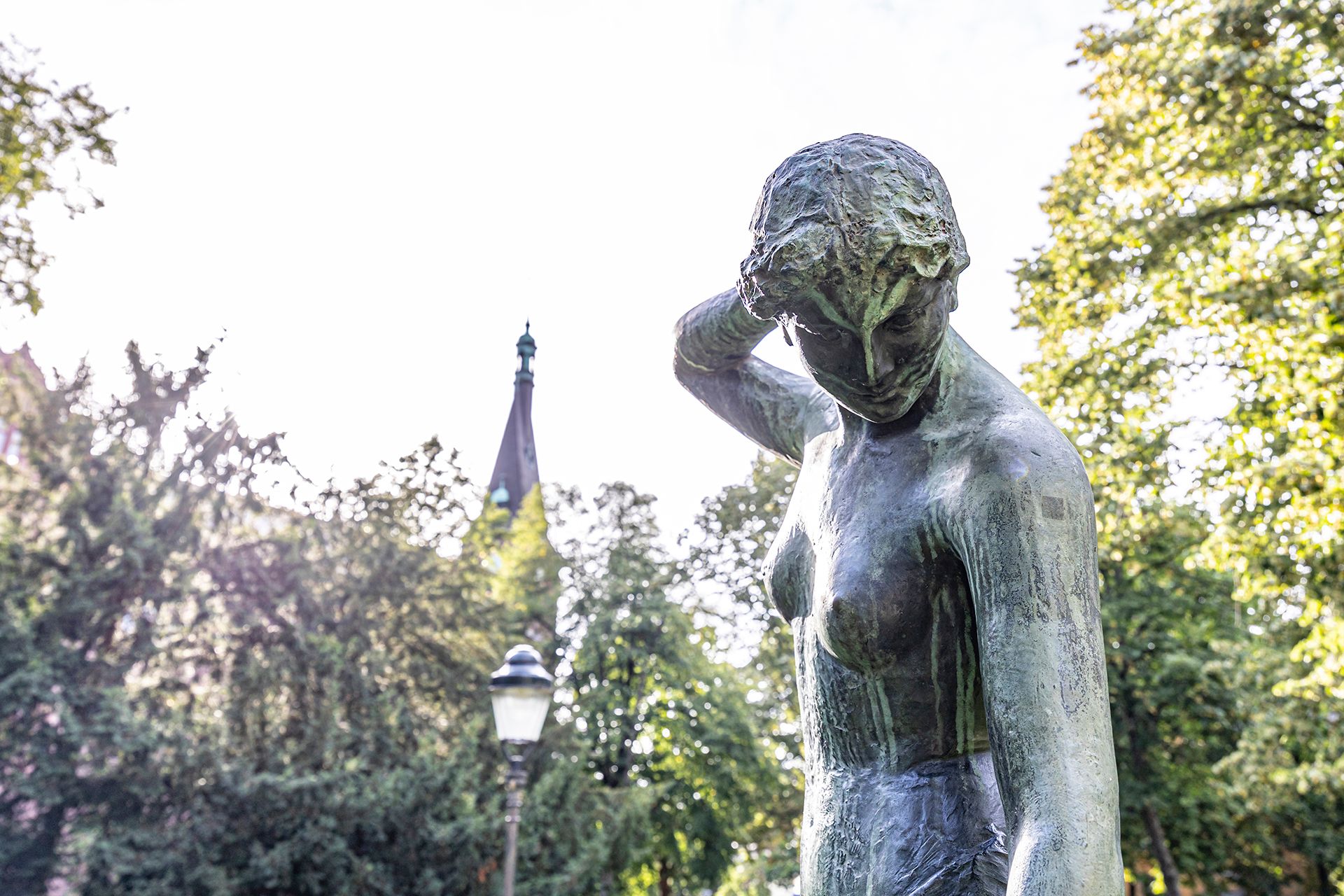The bronze sculpture Flora by sculptor Richard Engelmann stands on Heinrich-Rosenberg-Platz and you can marvel at the imposing façade of the Friedrich-Gymnasium, one of Freiburg's most important cultural monuments.