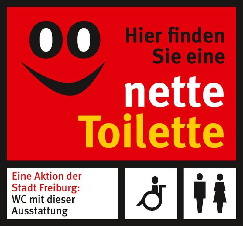 What to do when you're in a hurry to find a "quiet little place"? It's simple: look out for the "nice toilet"! Red stickers can be found on the entrance doors of numerous restaurants and bars in the city center, indicating that you can use the toilet for free: You can use the toilet here for free. The "nice toilets" are accessible during the regular opening hours of the participating businesses.