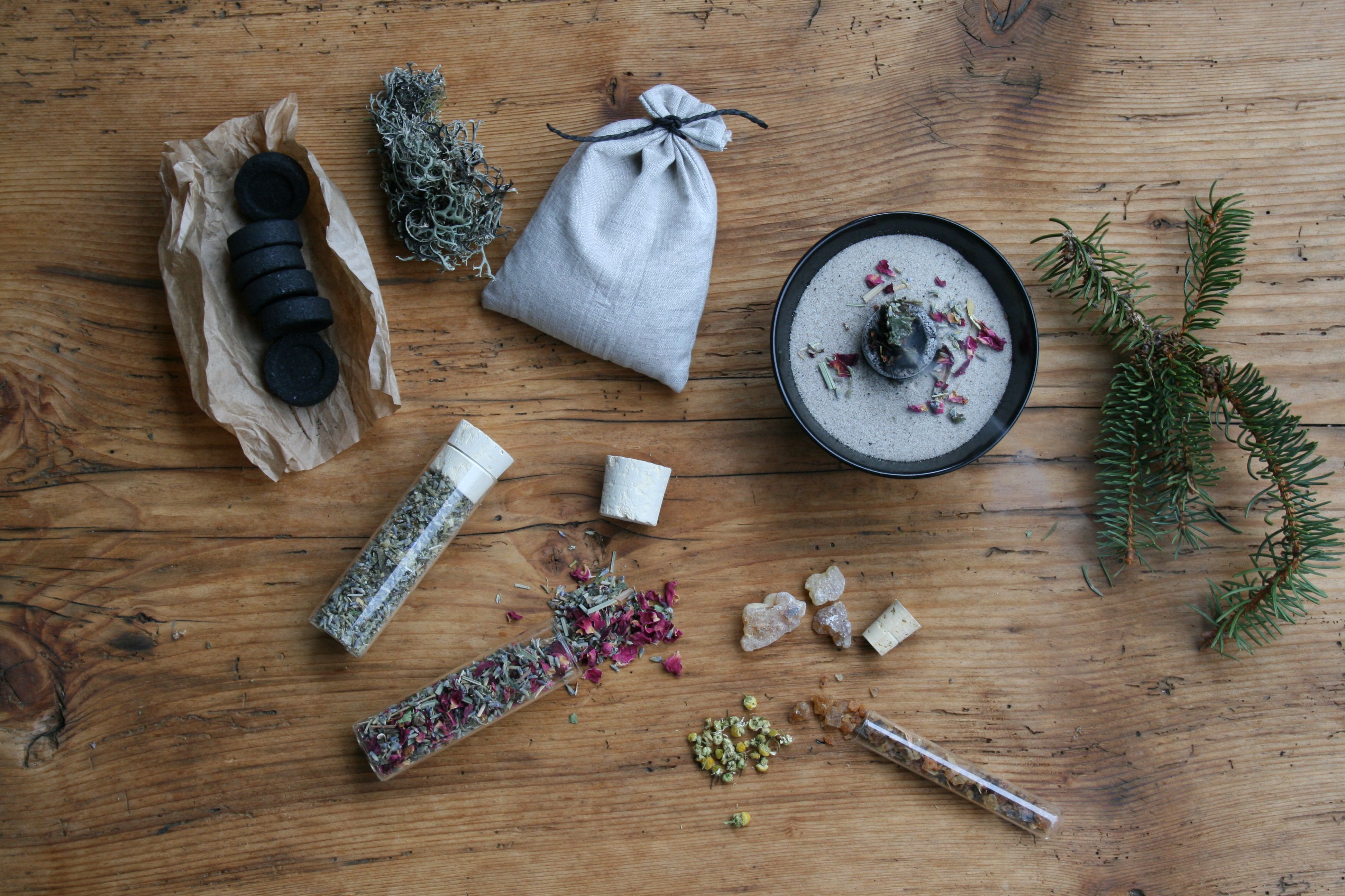 (incl. drinks & vegetarian snack, material, large selection of incense, resins such as frankincense, myrrh etc., roots, flowers etc., jars for filling, instructions. jars for filling, instructions)