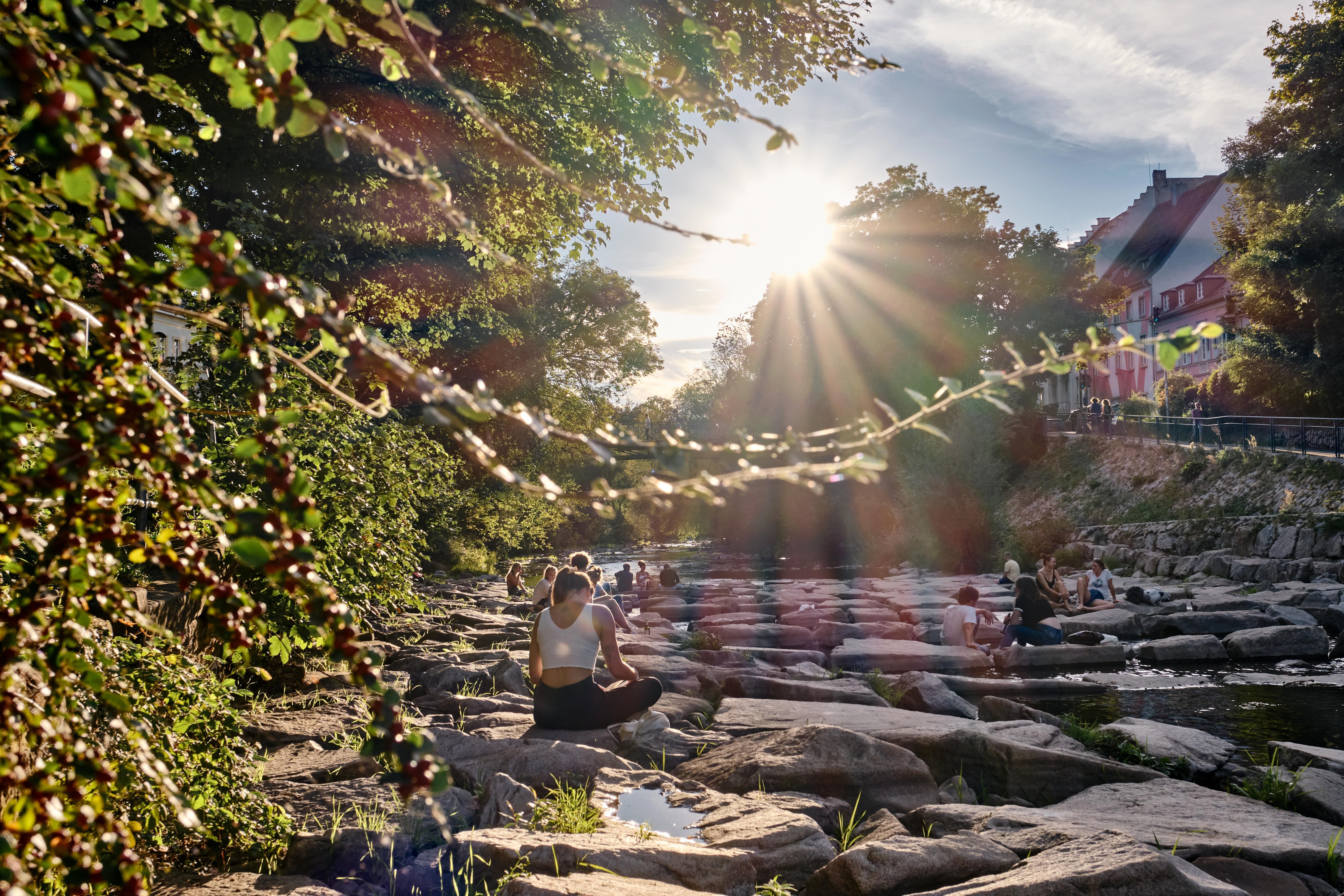 From Martinstor (Martin's Gate), walk straight ahead to the Kaiserbrücke bridge, then turn right down to the Dreisam and along the riverbank to the Luisensteg, which leads across to Schillerstrasse and Turnseestrasse. Once you have crossed the water and the main traffic axis, the noise of the city becomes quieter with every step and the buildings become steadily less dense. At the Turnsee/Talstraße junction, the view opens up to the right of St. John's Catholic Church, whose sandstone towers rise 60 meters into the air. Just a few hundred meters further along the road, the evangelical church of Christ is much smaller, but also worth seeing, especially inside. With a bit of luck, you can listen to church music as you pass by. Continue along Turnseestrasse to Erwinstrasse, where various shop windows, Italian delicacies and the art café "Artjamming" await. Just cross Günterstalstraße, with its stores and craft businesses, to dive back into the silence away from the bustling traffic and discover the graffiti house. At the crossroads, turn left into Kirchstraße, where you will also find a few open doors to stop for a bite to eat. Alternatively, benches on Annaplatz invite you to simply soak up the atmosphere. If you want something bigger and even greener, turn left at the end of Kirchstrasse into Lorettostrasse - and cross Günterstalstrasse to reach Urachstrasse.Continue straight ahead on soft sandy paths until you reach the old Wiehre railway station, which is just as ideal for a break as the iconic Kaffee-Kiste - an outdoor café with a number of specialties - a few hundred meters further on, on the corner of Dreikönig-/Peter-Sprung-Straße. Or Förster Max, an ice cream parlor that is a revelation for lovers of exotic flavors. On the corner of Zasiusstrasse and Dreikönigstrasse, an old cemetery is hidden on a hill, modestly shrouding the historical significance of this place in silence. Today, children play here, the times of the Baden Revolution have given way to soulful peace. But this is just a side note, the route continues straight ahead for a good while along Zasiusstraße, which is known for its typical Wiehre architecture. For the final stage, the route turns left into Brombergstraße, makes a right at Talstraße and turns left again into Uhlandstraße. Then climb back down to the riverside path via the Mariensteg and, last but not least, let your feet dangle over the water on the Dreisam swing before returning to the city.