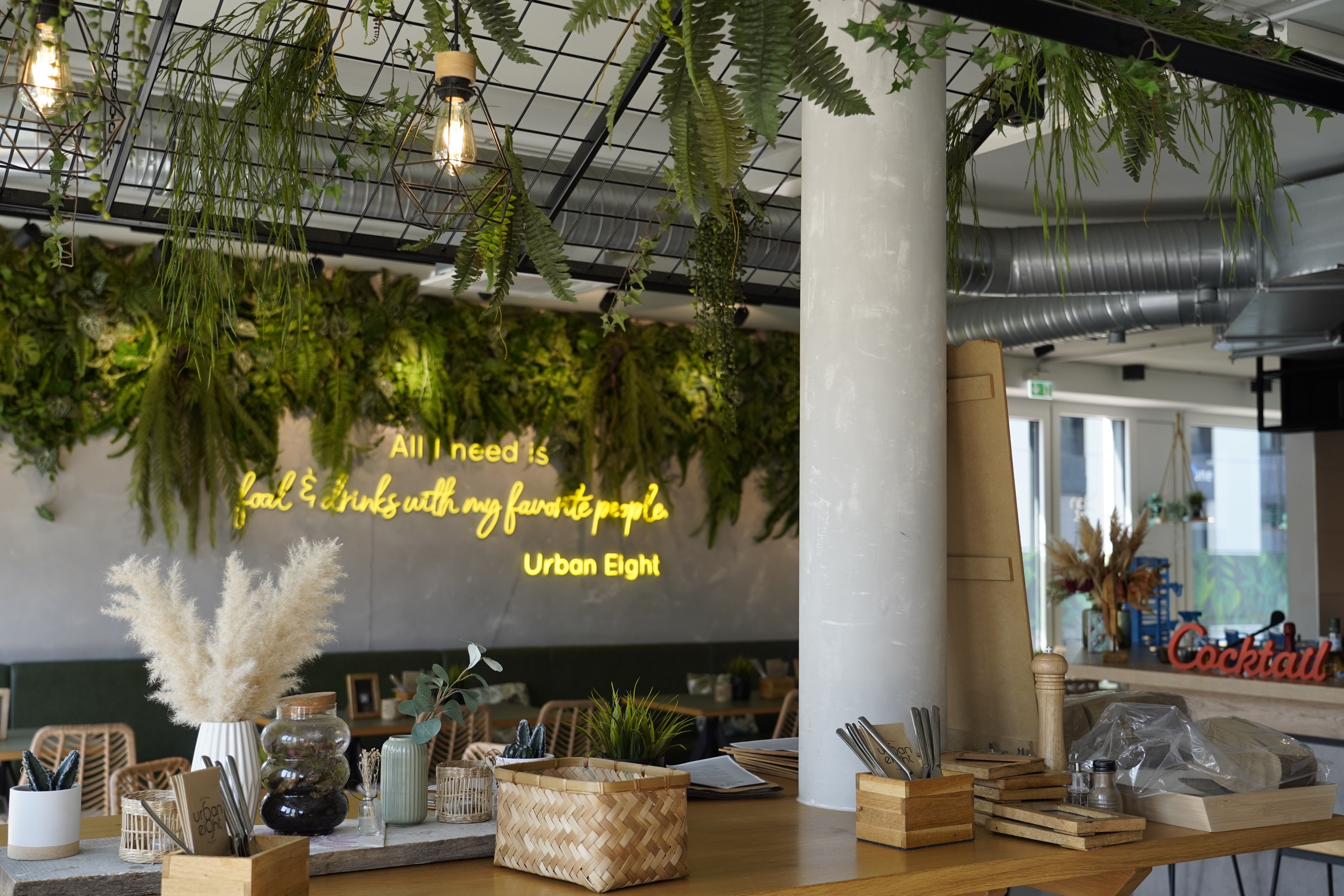 Urban Eight in Zollhallenstraße combines modern cuisine with Mediterranean influences. The restaurant offers breakfast, lunch, tapas and bowls in a stylish ambience.