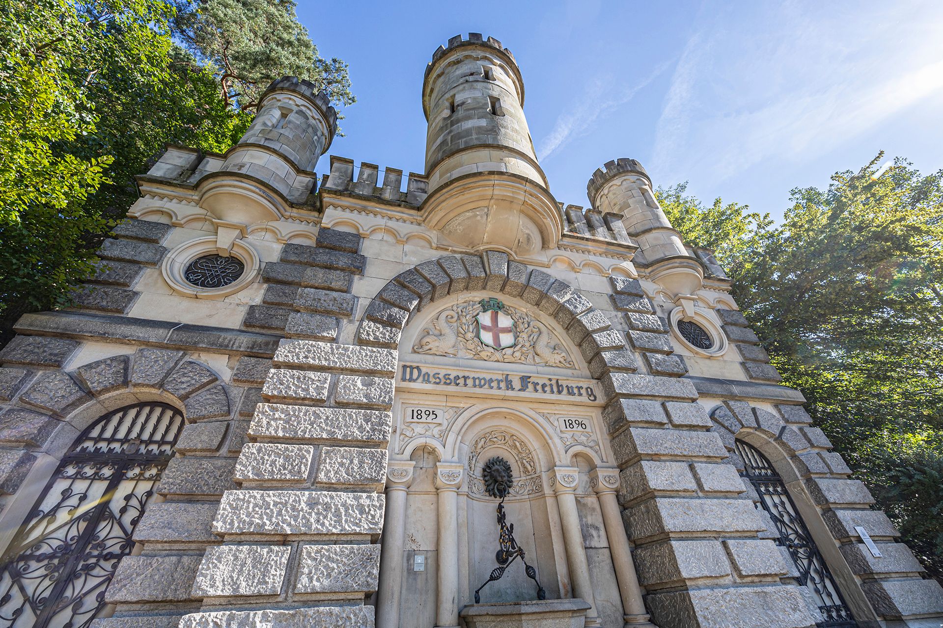 Freiburg's Wasserschlössle is located above the Wiehre district in the Sternwald forest. However, the façade is merely a disguise. Behind it is not a real castle with a prince and carriage, but lots of water. An elevated tank has been supplying drinking water to the east of Freiburg since 1895. As with the Bächle streams, the water flows to the households without pumps, using only the natural gradient. The design was inspired by a Freiburg city seal dating back to 1245. The fountain in front of the castle offers a taste of the cool water. Every two years, the regional electricity and water supplier opens its doors at the Wasserschlössle Festival, allowing visitors to take a look behind the scenes. But even without a traditional tour of the castle, the climb is worthwhile. Once at the top, you have a wonderful view of the old town and Freiburg Minster. And unlike the Schlossberg, you may well be able to enjoy this view all to yourself. Incidentally, the Wasserschlössle can also be found down in the city - it adorns all the manhole covers in the old town, as well as the mayor's chain of office.