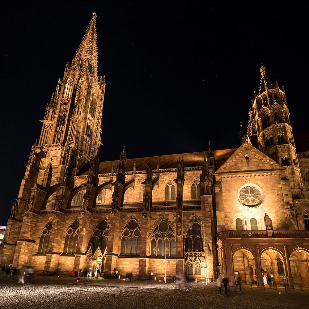 Rund 350 Jahre haben die Menschen am Freiburger Münster gebaut. Und waren dabei außerordentlich schnell. Das Münster Unserer Lieben Frau zu Freiburg ist nicht nur Wahrzeichen der Stadt, es ist auch eine der wenigen bedeutenden Kirchen, die im Mittelalter begonnen und auch fertiggestellt wurden. Den Anstoß zum Bau gab um 1200 der letzte Zähringer, Herzog Berthold V. Er wollte, anders als seine Vorgänger, nicht in einem Kloster auf dem Land, sondern direkt in Freiburg begraben werden und gab dafür den Ausbau der Stadtkirche in Auftrag. 1218 wurde er im heute ältesten spätromanischen Teil der Kathedrale bestattet.