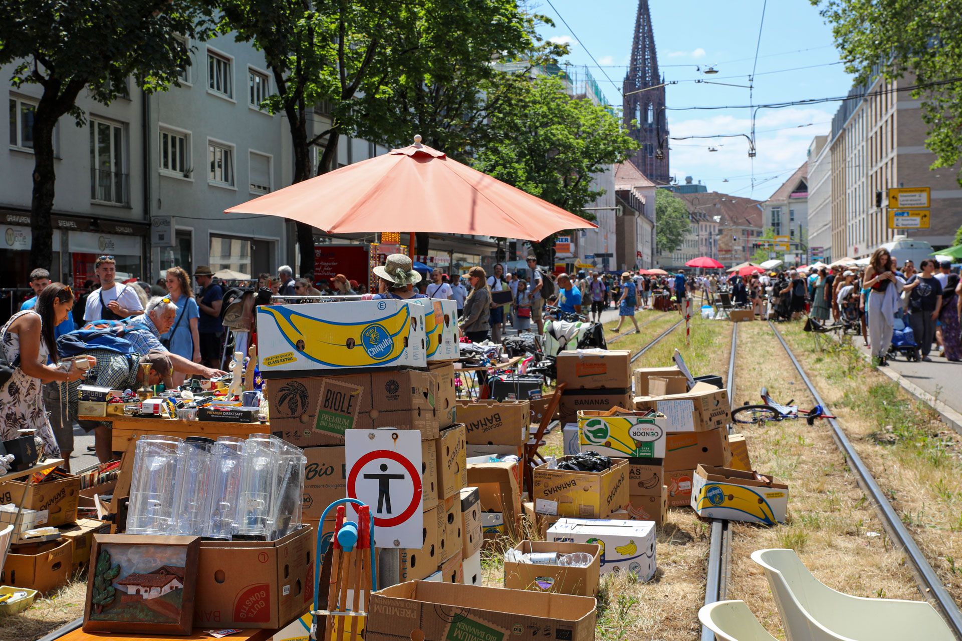 Mit dabei ist natürlich wieder der größte Straßenflohmarkt Freiburgs, der in diesem Jahr bereits zum 15. Mal stattfindet. Über 300 private Anbieter*innen präsentieren ihre Schätze und Fundstücke – von nostalgischen Raritäten über Haushaltswaren bis hin zu Second-Hand-Kleidung und Kunsthandwerk. Entlang einer beeindruckenden Strecke von 1,4 Kilometern, vom Europaplatz bis zum Rennweg, verwandelt sich die Habsburgerstraße für einen Tag in einen quirligen Basar voller Leben, Begegnung und Entdeckungsfreude.