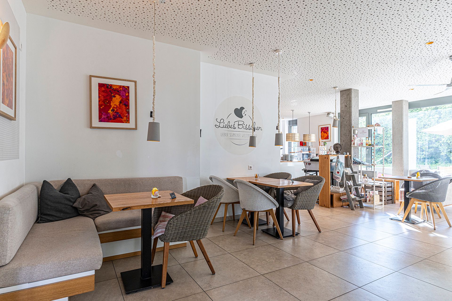 Au Café Liebes Bisschen, vous pouvez déguster de délicieuses spécialités de café, des gâteaux fraîchement préparés tous les jours et des petits déjeuners. De délicieux snacks et des plats chauds raffinés, qui changent tous les jours, vous attendent également ! Tout est également disponible à l'emporter.