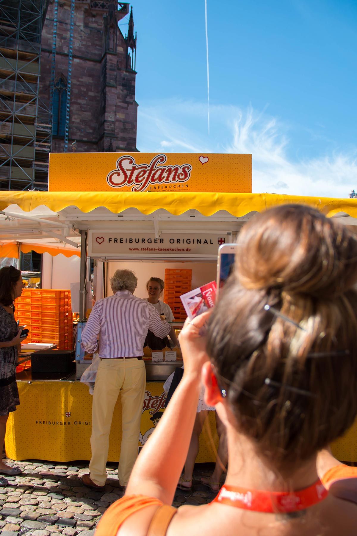 En plus du Münstermarkt, nous sommes aussi présents sur d'autres marchés. Je trouve qu'il est important d'y avoir son propre point de vente. D'une part, cela me rend moins dépendante de la pression des prix des supermarchés. Mais surtout, cela permet aux gens de remarquer : "Stefans Käsekuchen" est certes devenu une grande entreprise, mais ce n'est pas une usine. C'est toujours une manufacture locale.