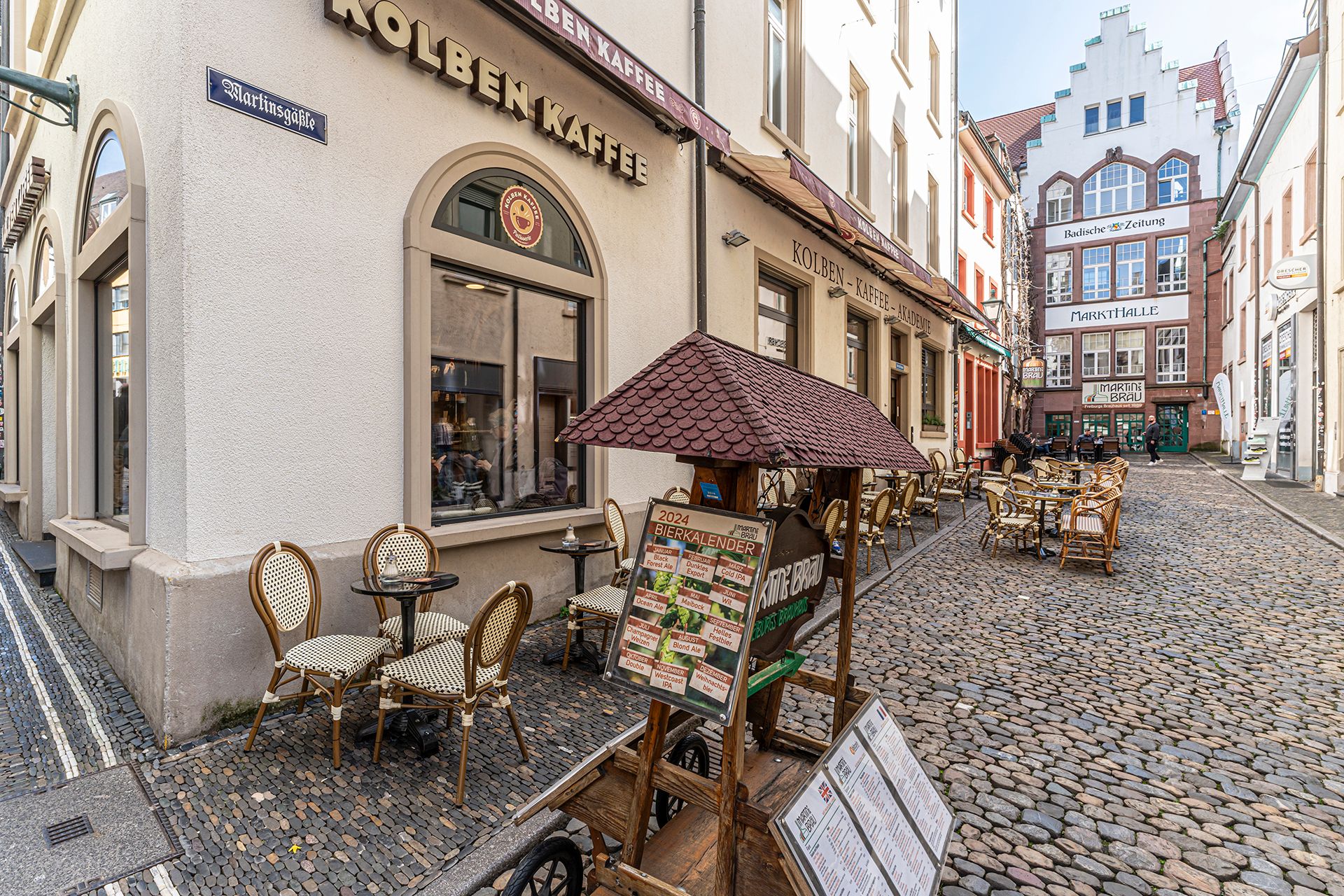 Dans la vieille ville, Fribourg montre son côté sucré : à la porte de Saint-Martin, par exemple, le Kolben Kaffee est régulièrement récompensé pour ses gâteaux ou ses tartes de sa propre pâtisserie. Juste au coin de la rue, dans le charmant Schneckenvorstadt, Au Contraire sert du café et des gâteaux et se transforme en bar le soir ; au Café August, on trouve à travers la fenêtre tous les ingrédients pour un Kaffeeklatsch agréable, les pieds dans le Bächle. Cette culture du plaisir s'est depuis longtemps répandue dans les quartiers de la ville : par exemple à Herdern, où le Café Liebes Bisschen sert des gâteaux faits maison qui ont déjà été récompensés.