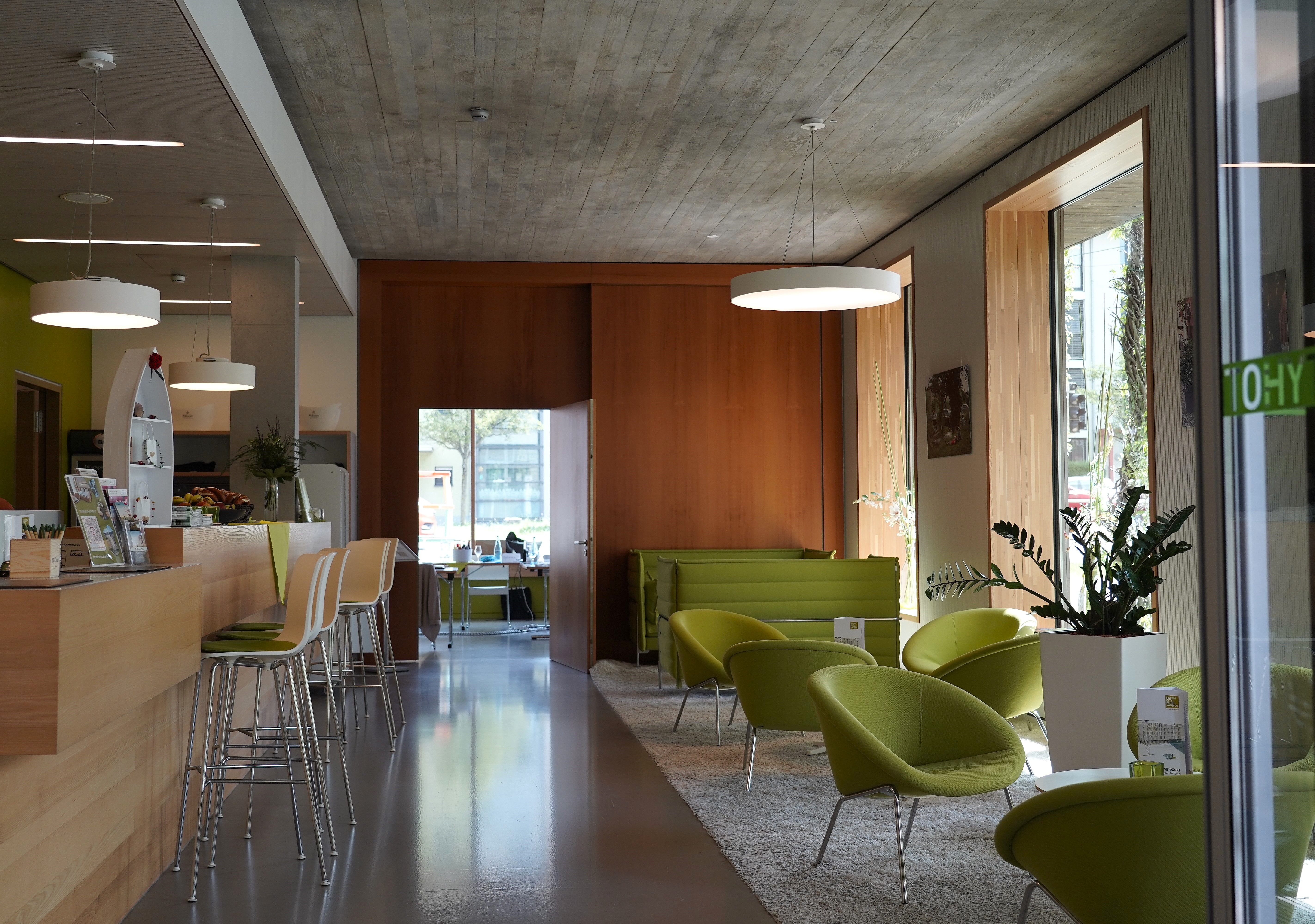 Hôtel 3 étoiles supérieur moderne à Fribourg-Vauban avec une architecture durable, une alimentation bio régionale et un concept d'inclusion intégratif.