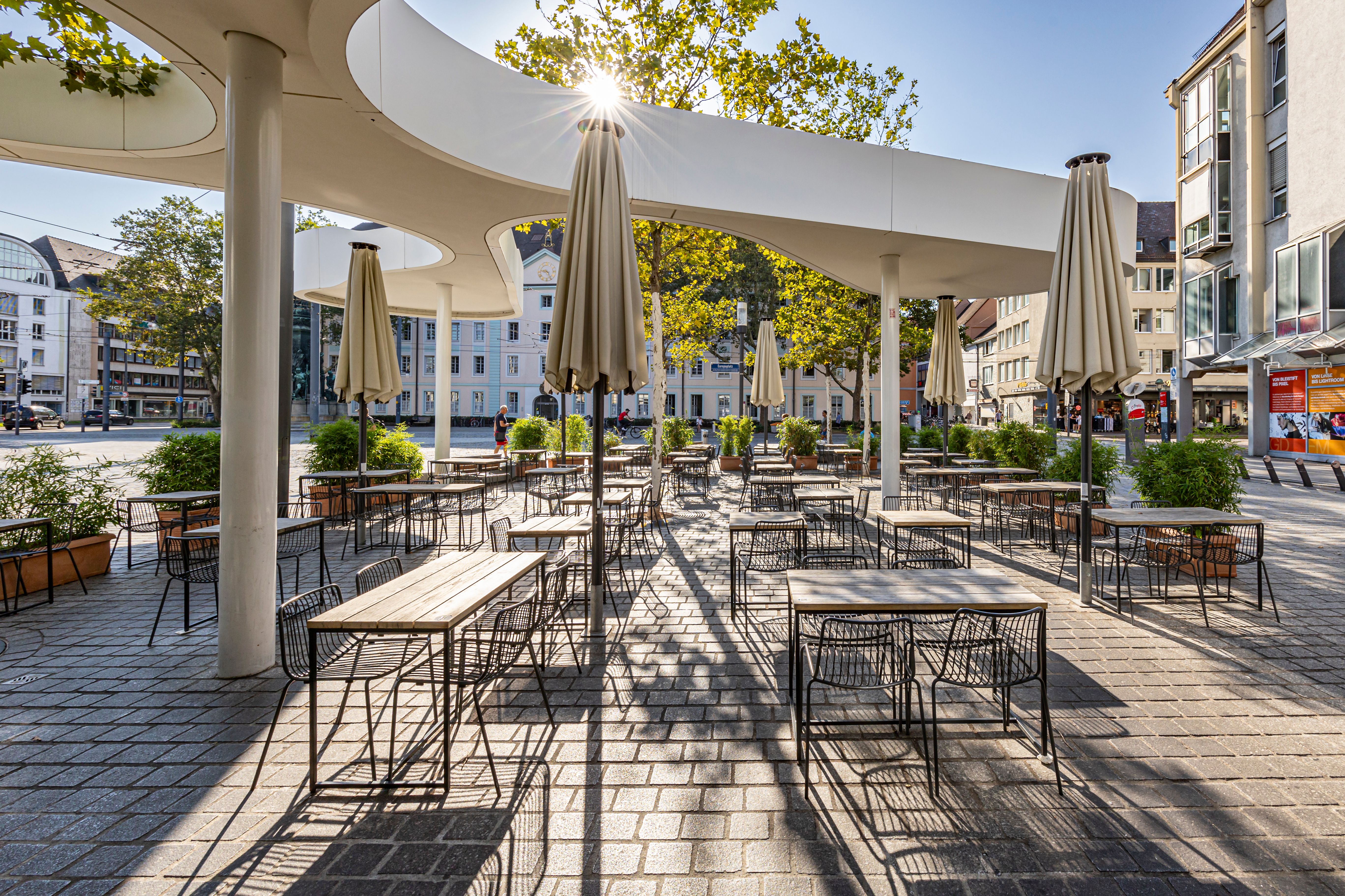 Hans im Glück, situé sur l'Europaplatz, allie design urbain et ambiance décontractée. Dans le pavillon moderne avec beaucoup de bois, de verdure et de lumière du jour, des burgers créatifs sont servis - avec du bœuf, du poulet ou des galettes végétales. L'offre est complétée par des bols, des salades fraîches, des accompagnements et des promotions saisonnières. Les boissons telles que les limonades faites maison, les cocktails et les long drinks font également partie intégrante du concept. Par beau temps, la terrasse spacieuse permet de s'attarder au cœur de la ville. Le restaurant s'adresse aussi bien aux amateurs de viande qu'aux végétariens et végétaliens.