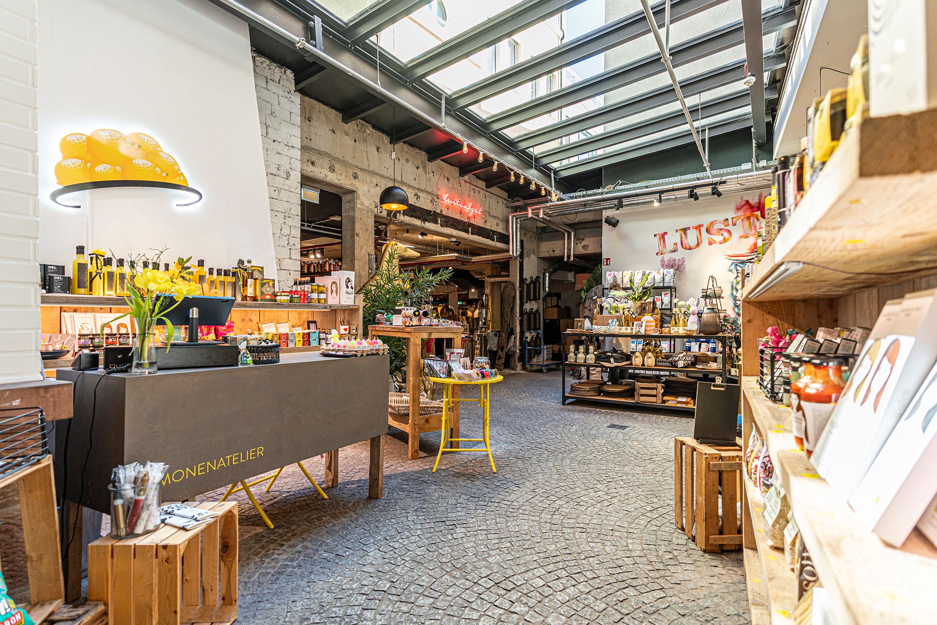 À quelques kilomètres de la ville, Cornelia Huber produit le véritable Limoncello du sud du Pays de Bade. À partir de véritables citrons siciliens. Cette petite goutte de dolce vita est en vente au conceptstore Lust auf Gut, à côté d'une sélection de produits d'épicerie fine italiens et de petites choses joyeuses et colorées. L'atelier des citrons y dispose de son propre stand de vente dans la lumière claire du toit vitré de la cour intérieure - un lieu plein d'amour lumineux pour les citrons et l'Italie.