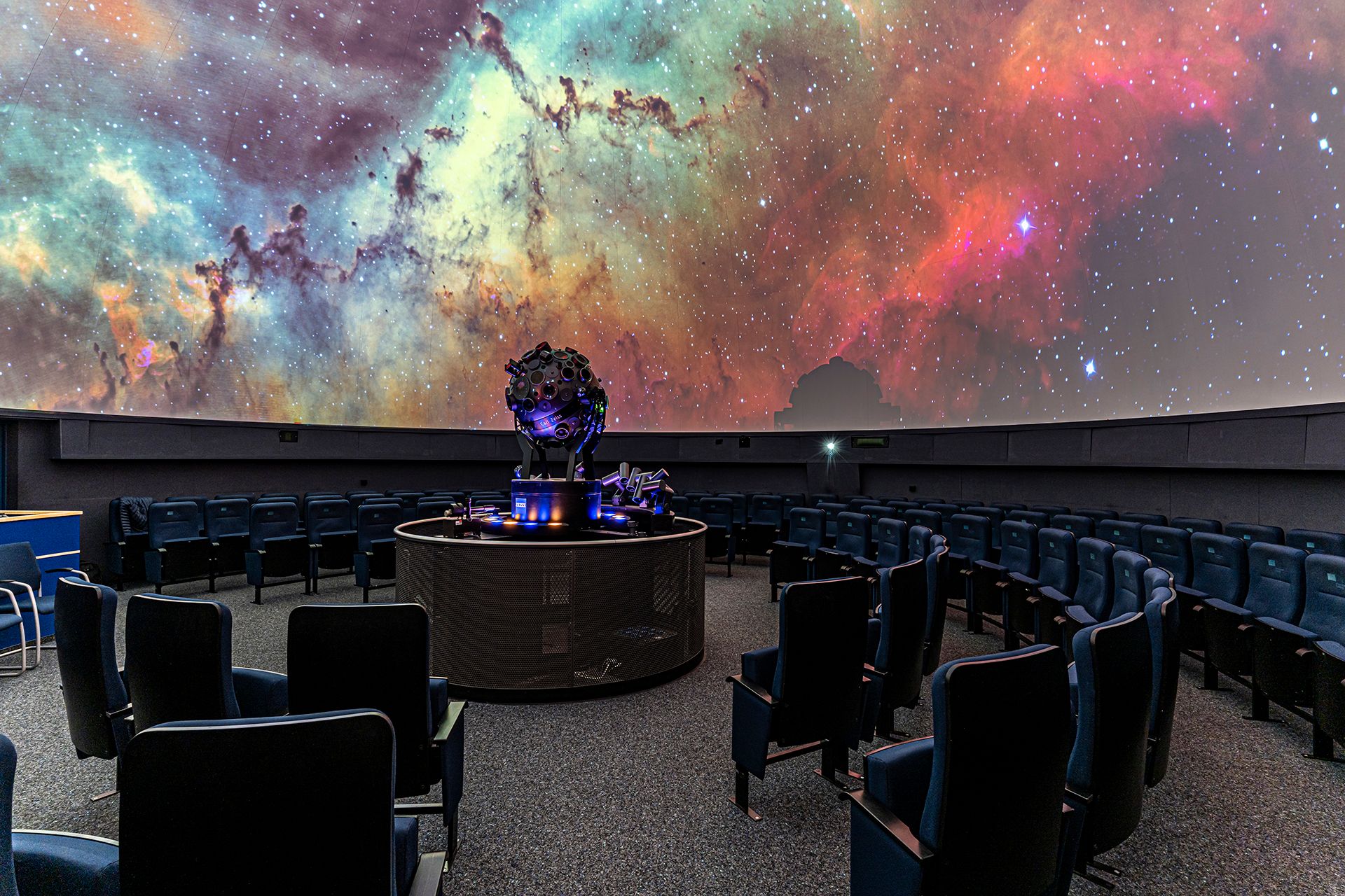 Grâce à l’animation pleine voûte par un système vidéo moderne et de deux projecteurs de haute performance, le Planétarium se transforme en un super cinéma en immersion complète sous un écran de 360°. Ainsi, les enfants peuvent notamment vivre au plus près les aventures du poisson arc-en-ciel et plonger dans son monde sous-marin. Les plus âgés des astronomes-amateurs peuvent participer à une croisière en direction des points forts de la galaxie.