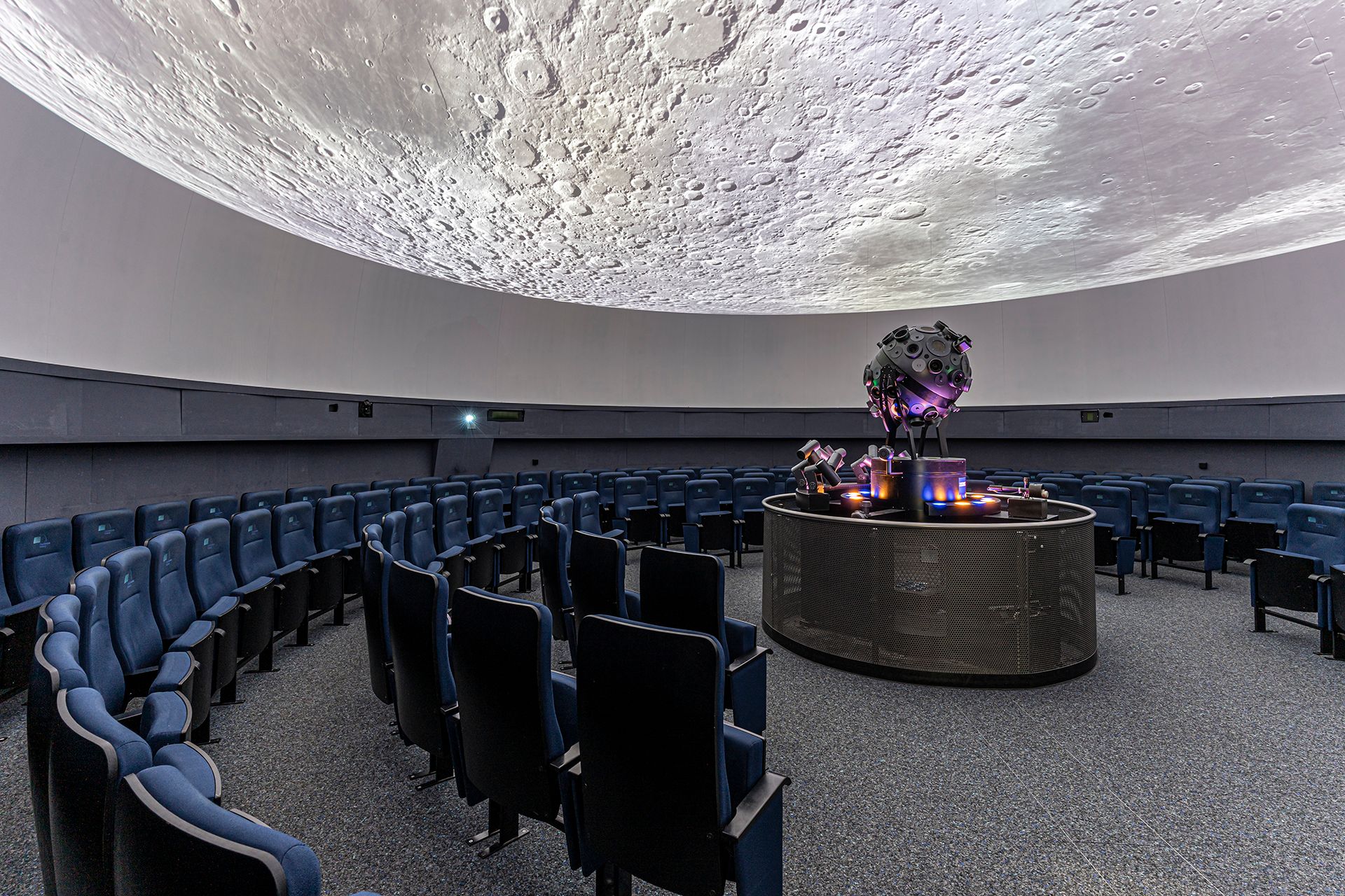 La boule aux étoiles projette un firmament précis et réaliste dans le grand dôme de 13 mètres de diamètre. Observez la rotation de la grande ourse autour de l’étoile polaire au nord dans le ciel ou découvrez la fameuse « croix du sud » qui, dans notre monde réel n’est visible que depuis l’hémisphère sud de la terre.