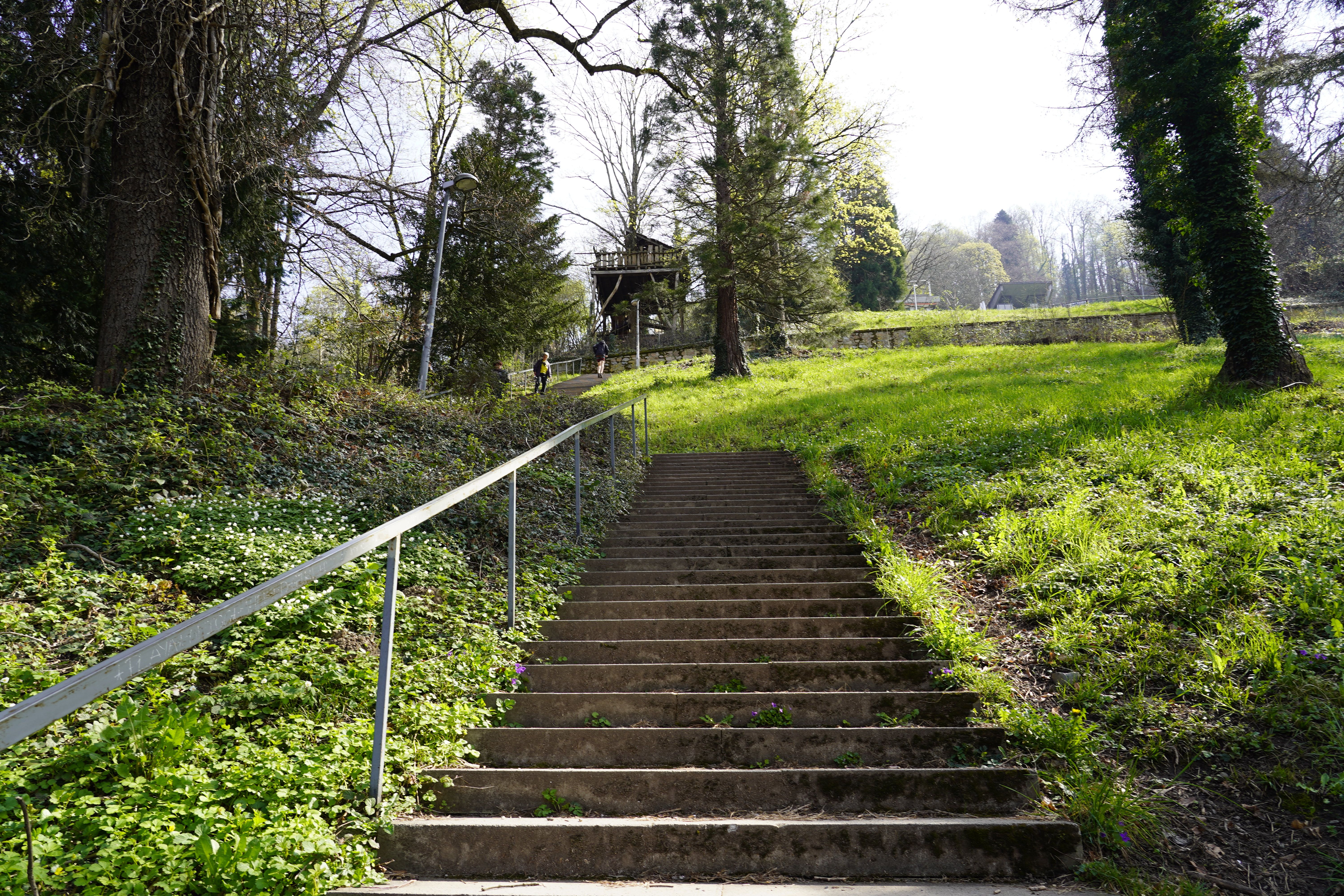 Ce voyage silencieux commence à partir du Schlossbergbahn (tram à crémaillère de Schlossberg) dans le jardin de la ville. La douce agitation de la ville t'accompagne encore avant que tu ne franchisses le Mozartsteg et que tu ne plonges directement dans l'ascension. Pas à pas, les escaliers te portent plus haut, le long d'arbres imposants dont les couronnes filtrent la lumière et créent une atmosphère calme, presque méditative. Le rythme de tes pas et de ta respiration devient alors le rythme naturel de cette petite randonnée.