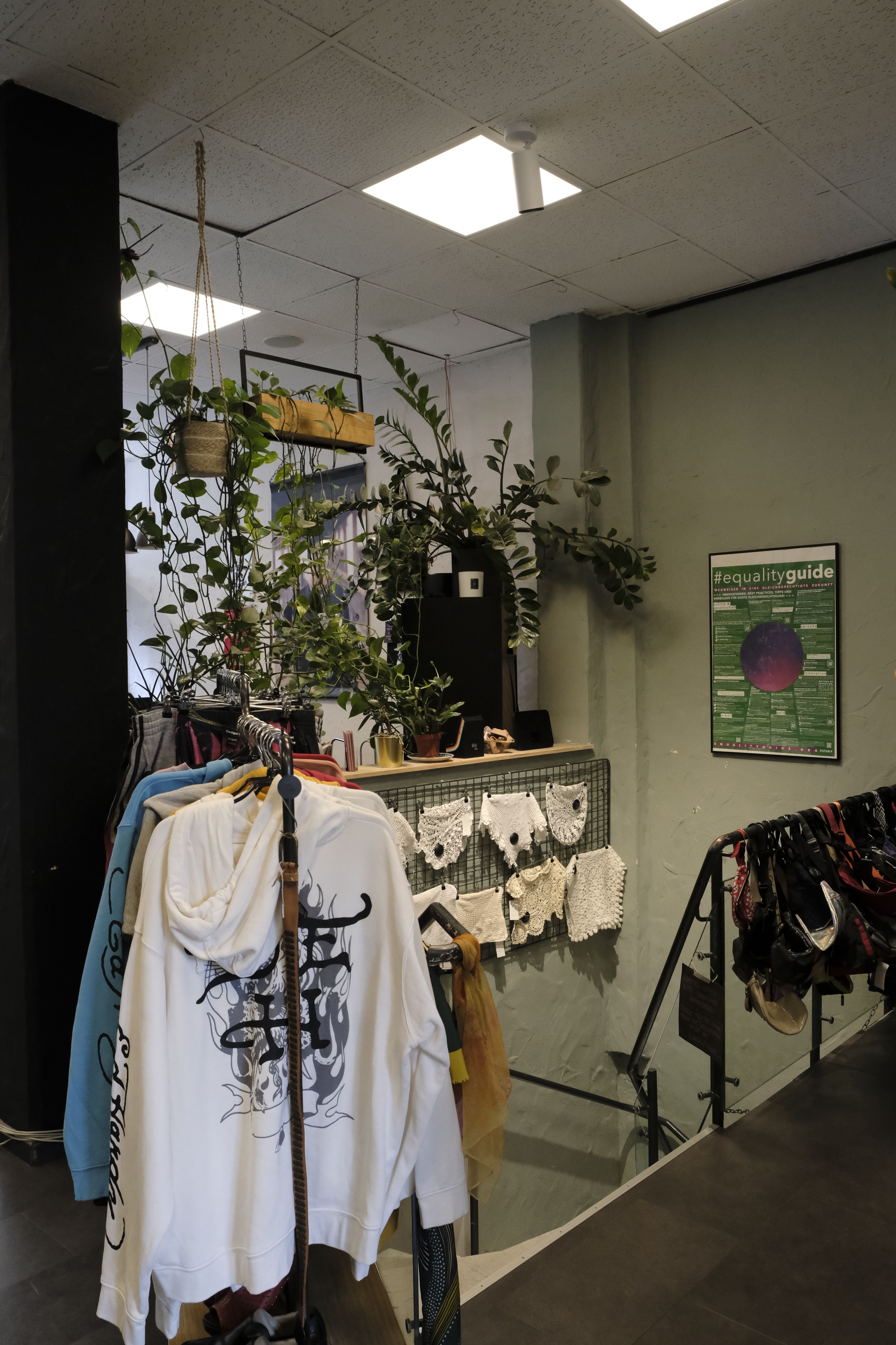 Le vestiaire est une grande boutique de seconde main, à la fois bien organisée et pleine de pièces sympas.