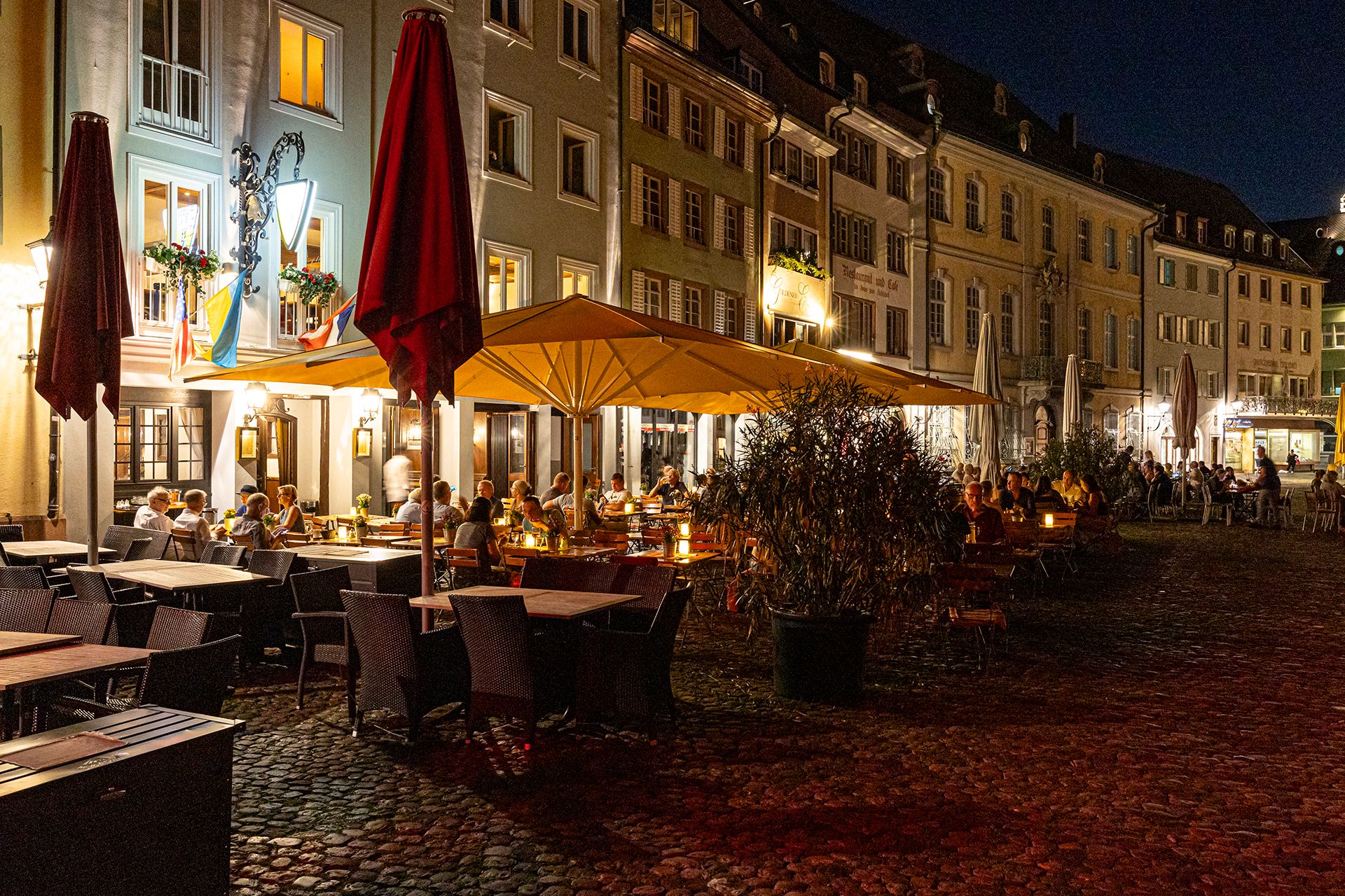 Umgeben von malerischen Gebäuden, darunter das beeindruckende Freiburger Münster mit seinem charakteristischen Turm, strahlt der Platz eine ganz besondere Atmosphäre aus. Morgens verwandelt sich der Platz in einen lebhaften Marktplatz, auf dem frische Produkte, handwerkliche Erzeugnisse und regionale Spezialitäten angeboten werden. Hier mischen sich die Geräusche des Markttreibens mit dem fröhlichen Gelächter der Menschen.