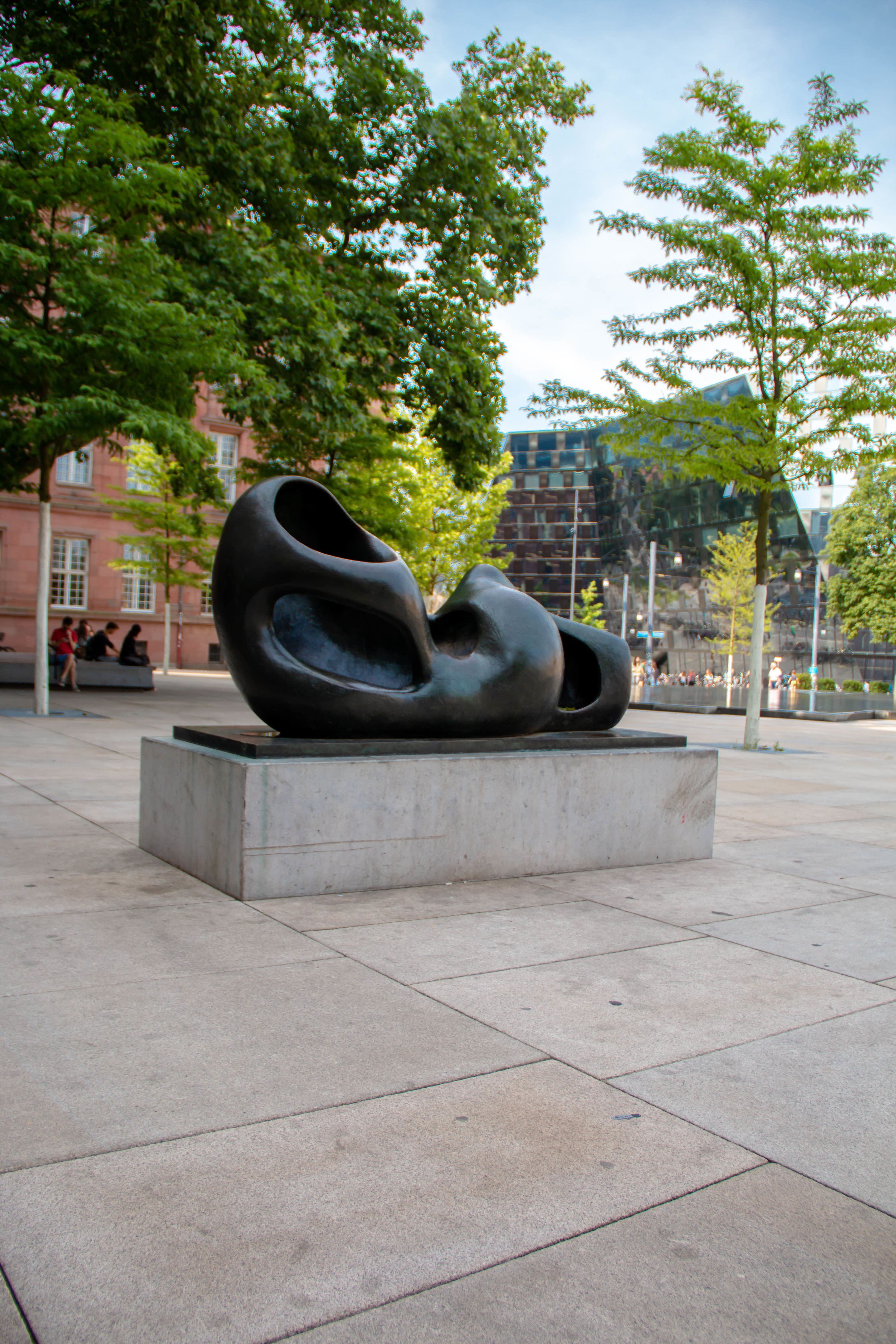Die „Reclining Figure“ von Henry Moore ist eine eindrucksvolle Bronzeplastik auf dem Platz der Alten Synagoge in Freiburg. Die liegende Figur spiegelt Moores Faszination für organische Formen wider und zählt zu den bedeutendsten Kunstwerken im öffentlichen Raum der Stadt.