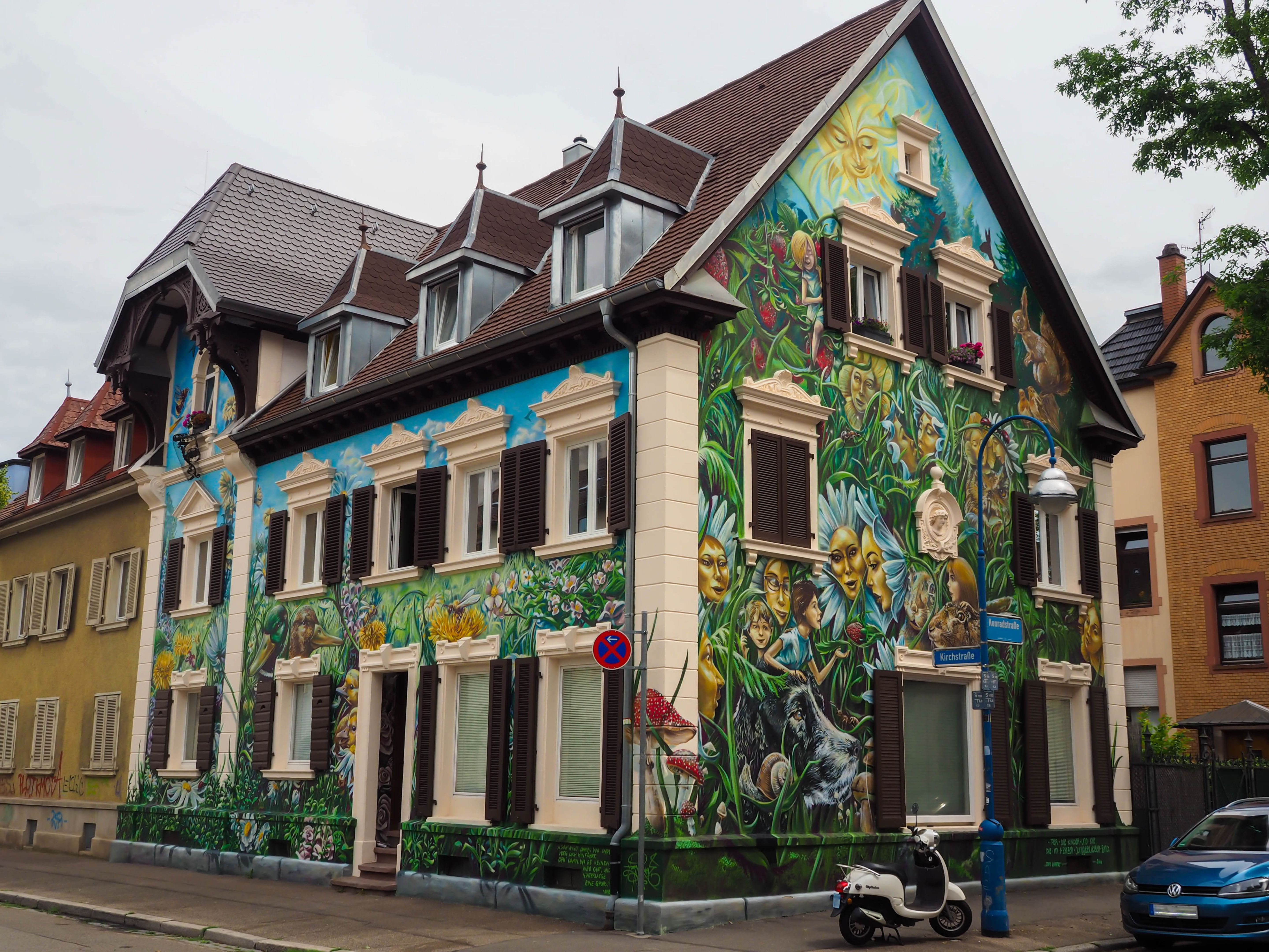 Weiter geht es entlang der Turnsee- bis zur Erwinstraße, wo verschiedene Schaufenster, italienische Delikatessen und das Kunst-Café „Artjamming“ warten. Die Günterstalstraße mit ihren Geschäften und Handwerksbetreiben wird lediglich überquert, um gleich wieder fern des treibenden Verkehrs in die Stille abzutauchen und das Graffiti-Haus zu entdecken.