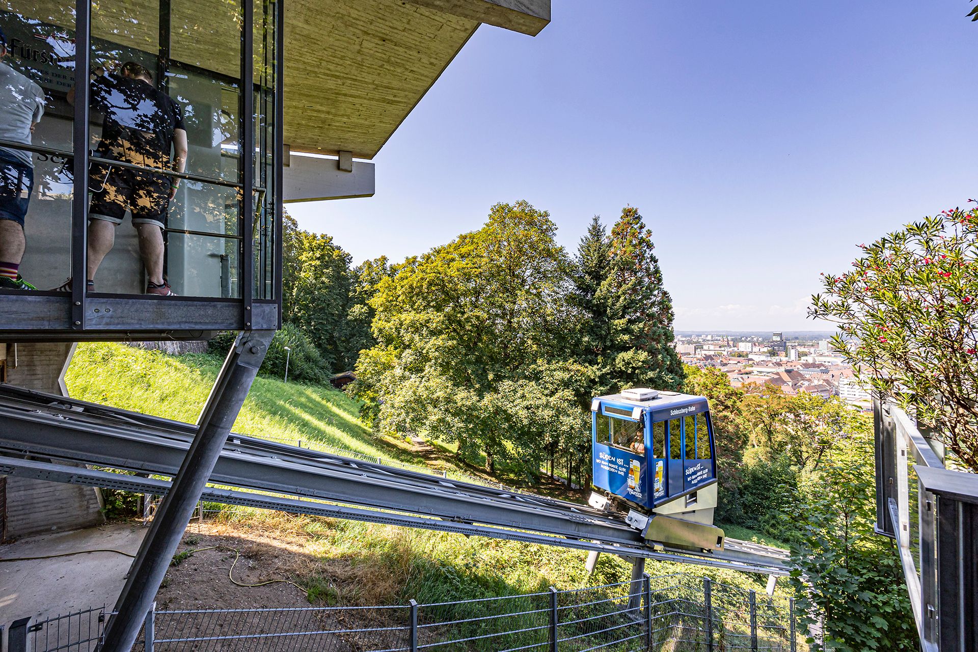 Wer nach einer Tour durch Freiburg ein wenig Natur oder den Sonnenuntergang mit Blick auf die Stadt genießen möchte, gelangt mit der schienengebundenen Bahn vom Zentrum in das attraktive Naherholungsgebiet auf dem Schlossberg. Die Schlossbergbahn befördert in ihrer Kabine bis zu 25 Personen. Die Bahn fährt nach Bedarf und kann von den Fahrgästen selbst bedient, also angefordert und gestartet werden. Es gibt daher keine festen Abfahrtszeiten. Die Fahrtdauer für eine Strecke beträgt ca. 3:15 Minuten.