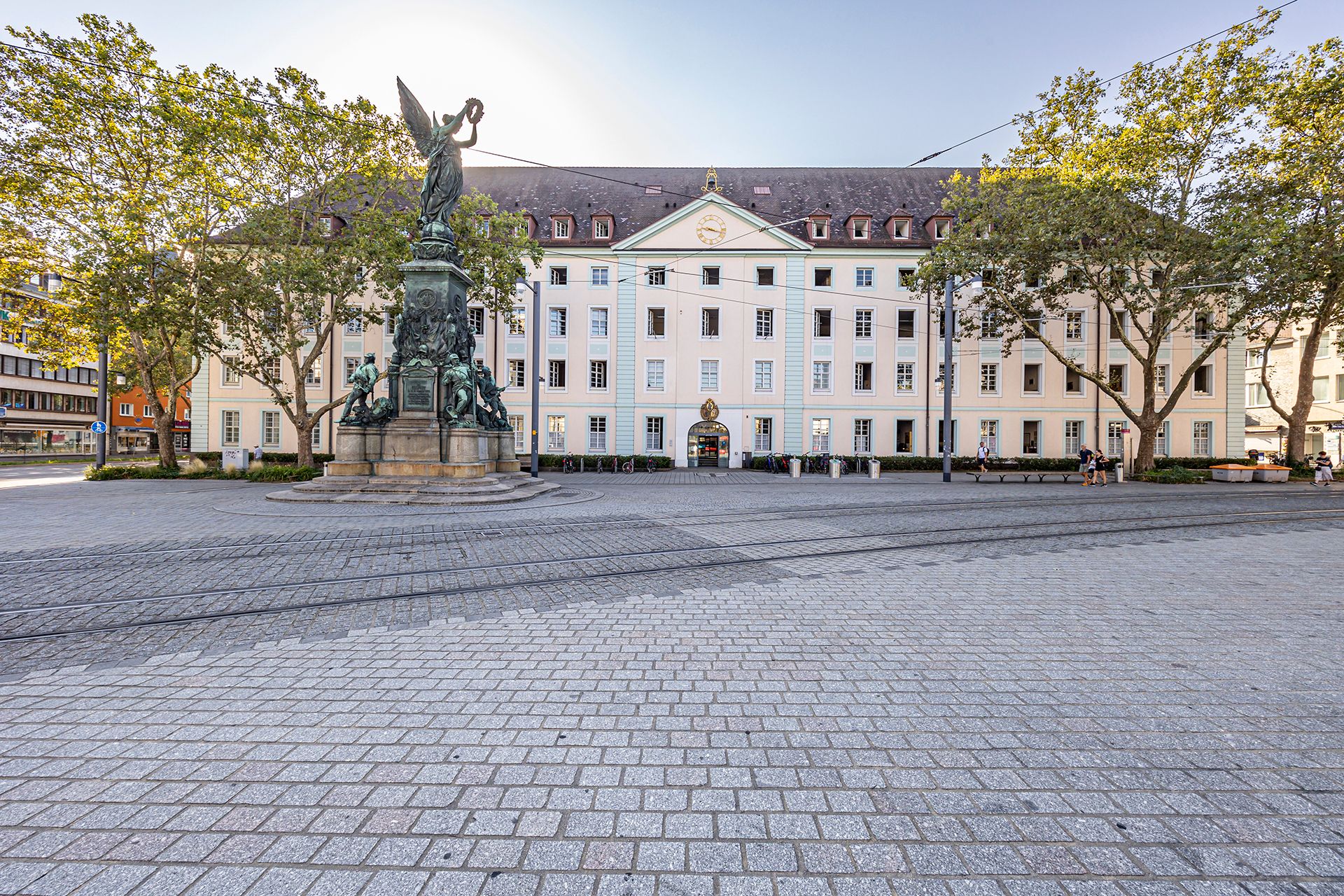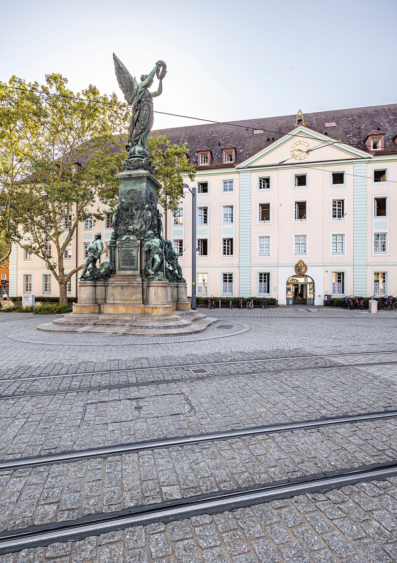 In einem öffentlichen Wettbewerb, für den sich 18 Künstler bewarben, bekam der Bildhauer Karl Freidrich Moest den Zuschlag. Er schuf das 1876 eingeweihte Siegesdenkmal aus französischen Geschützrohren. Auf dem sich nach oben verjüngenden Postament, geschmückt mit Inschriften und Abbildungen der Kriegshelden, steht natürlich Viktoria, die Siegesgöttin, die stolz einen Lorbeerkranz in die Luft reckt. 1940 sollte das Denkmal ein Geburtstagsgeschenk für Adolf Hitler werden, was die Stadt jedoch ablehnte. Und so stand es bis März 2016 nur 100 Meter entfernt von seinem Ursprungsort am Nordrand der Altstadt. Durch den Bau einer neuen Stadtbahnlinie musste das Denkmal erstmals weichen. Nach der Fertigstellung des neuen Platzes am Friedrichring wurde das Siegesdenkmal dann an seinem Originalstandort, vor der ehemaligen Karlskaserne, wieder aufgestellt.